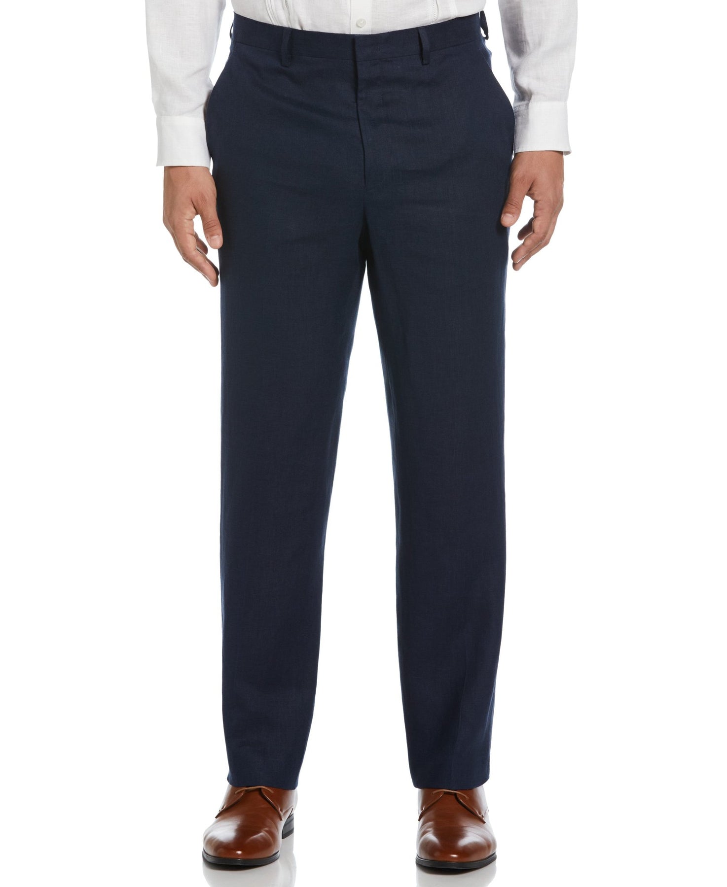 Whether you dress them up or down, you're sure to appreciate the classic look and feel of these Cubavera linen pants. Made with breathable linen fabric in a versatile solid color, these men’s pants are an easy choice for comfort and style in the warmer weather. They have a contemporary flat-front design with two side pockets and two back besom pockets for convenient storage of small essentials when you’re on the go.