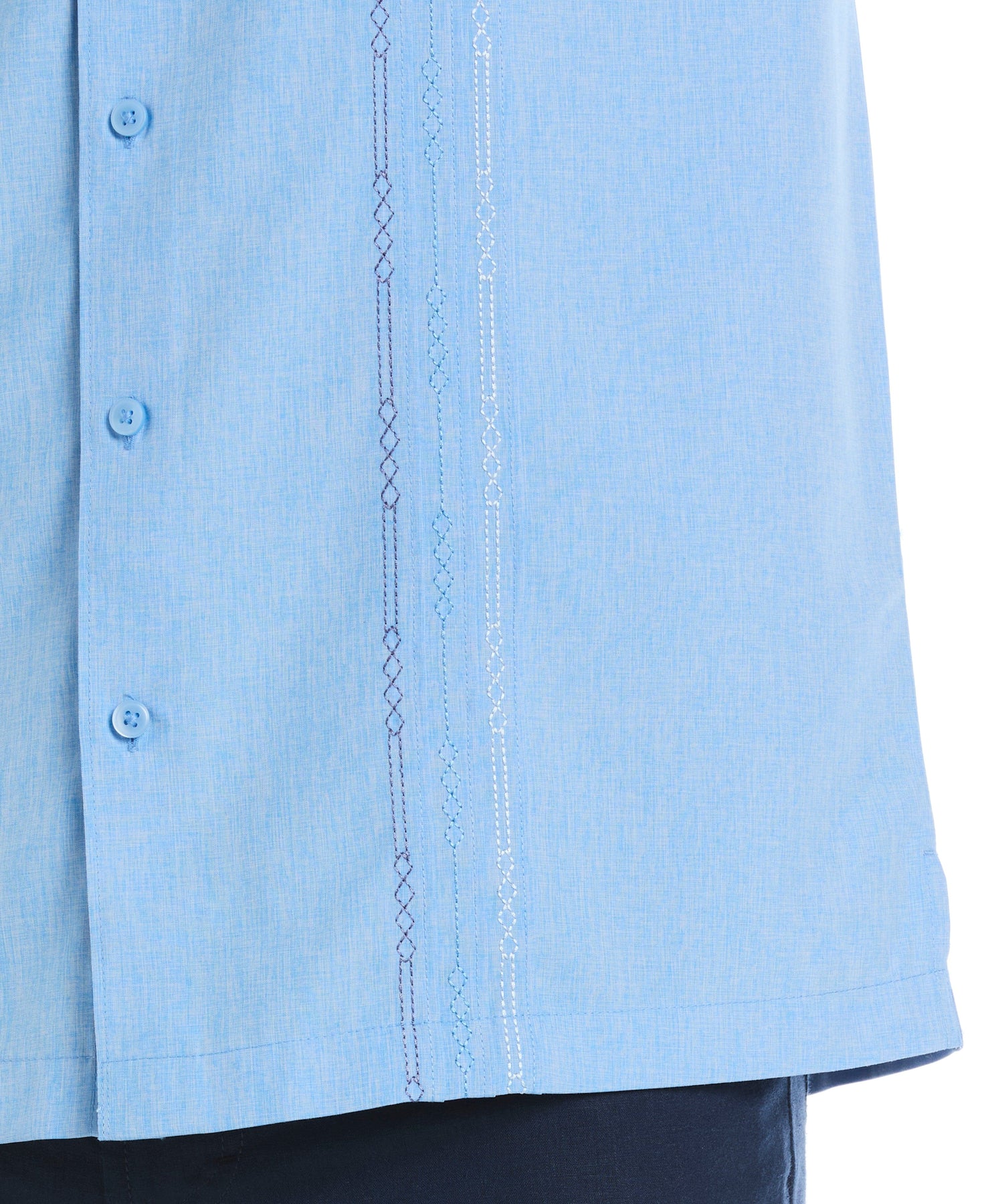 Style basics have never looked better with this Cubavera men's short sleeve button up shirt crafted in breezy chambray fabric with a smooth feel. An embroidered panel design elevates the look, while a classic point collar adds timeless polish. Easy care fabric means it can simply be washed in the machine and worn. Pair with shorts or pants for versatile style for daytime or an evening out.