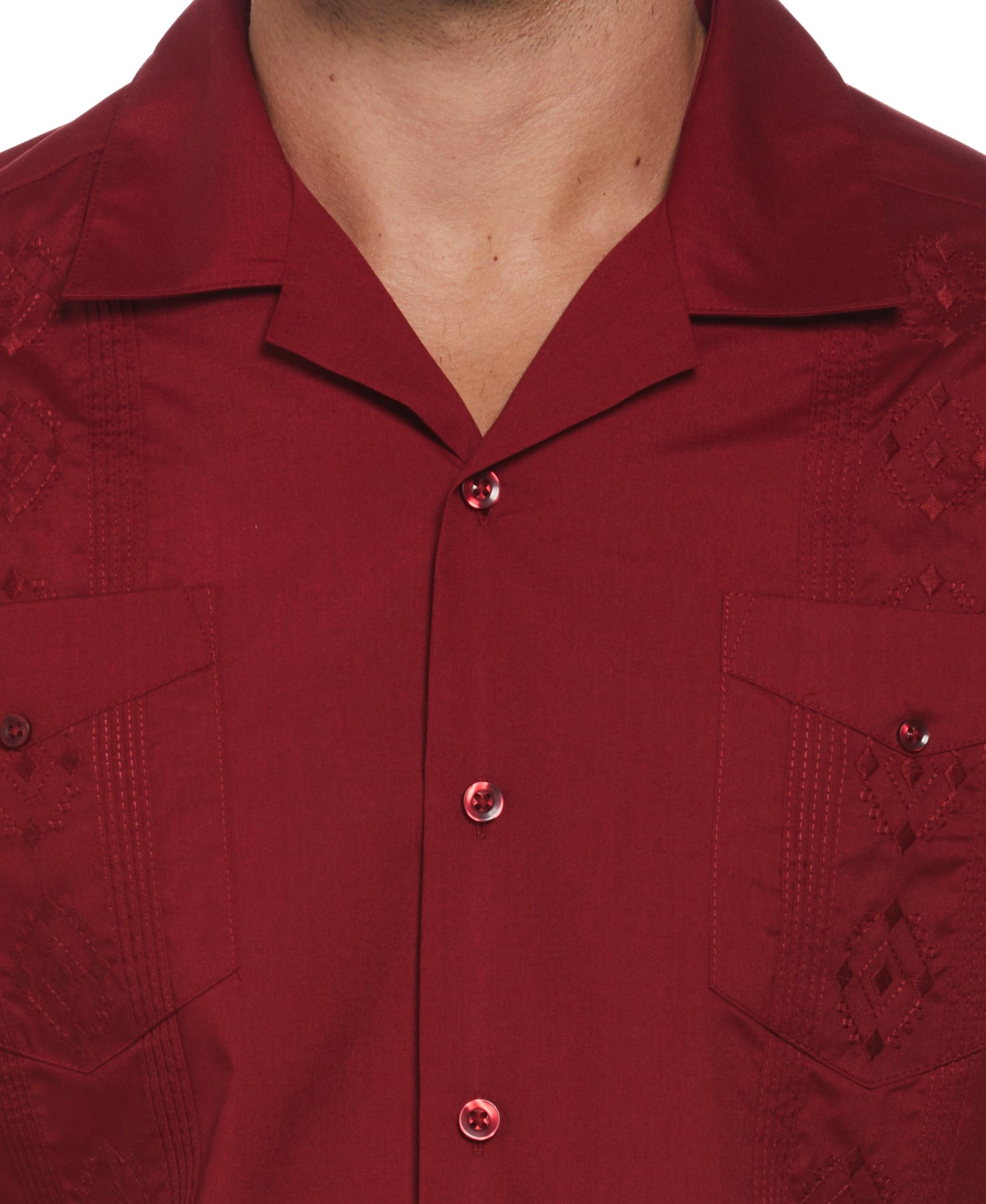 Stylish, authentic guayaberas can be tough to come by. Thanks to Cubavera, it doesn't have to be that way. Vertical pintucks are combined with our classic embroidery. The cotton blend poplin fabrication creates a lightweight shirt and a classic fit completes the comfort with a relaxed cut that's fuller through the chest and waist. This short sleeve button-down features a camp collar, four button-through pockets and is also available in Big & Tall.