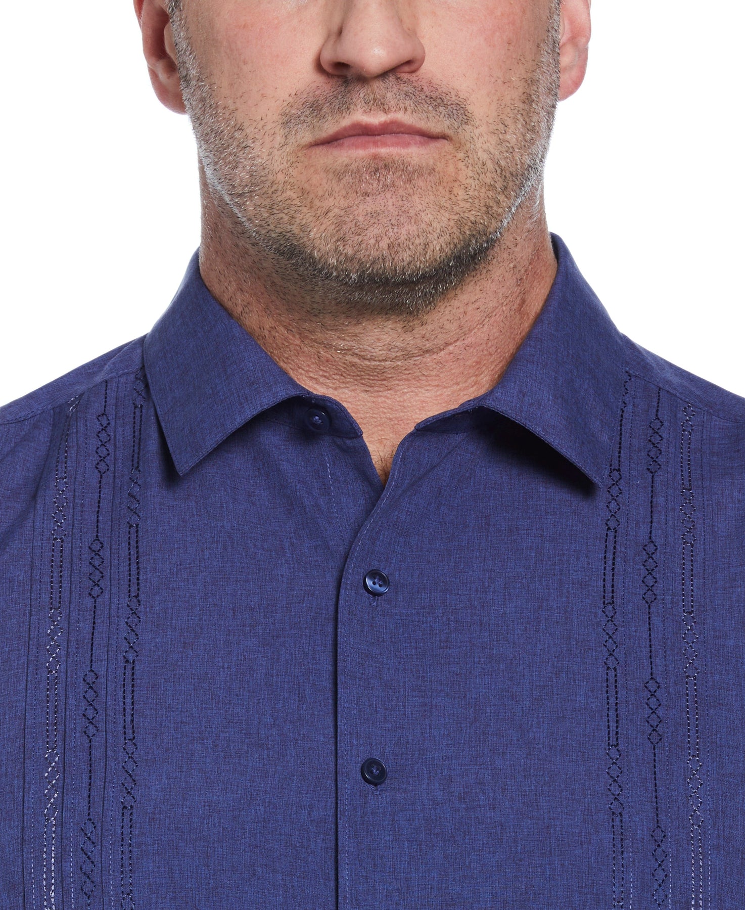 Style basics have never looked better with this Cubavera men's short sleeve button up shirt crafted in breezy chambray fabric with a smooth feel. An embroidered panel design elevates the look, while a classic point collar adds timeless polish. Easy care fabric means it can simply be washed in the machine and worn. Pair with shorts or pants for versatile style for daytime or an evening out.