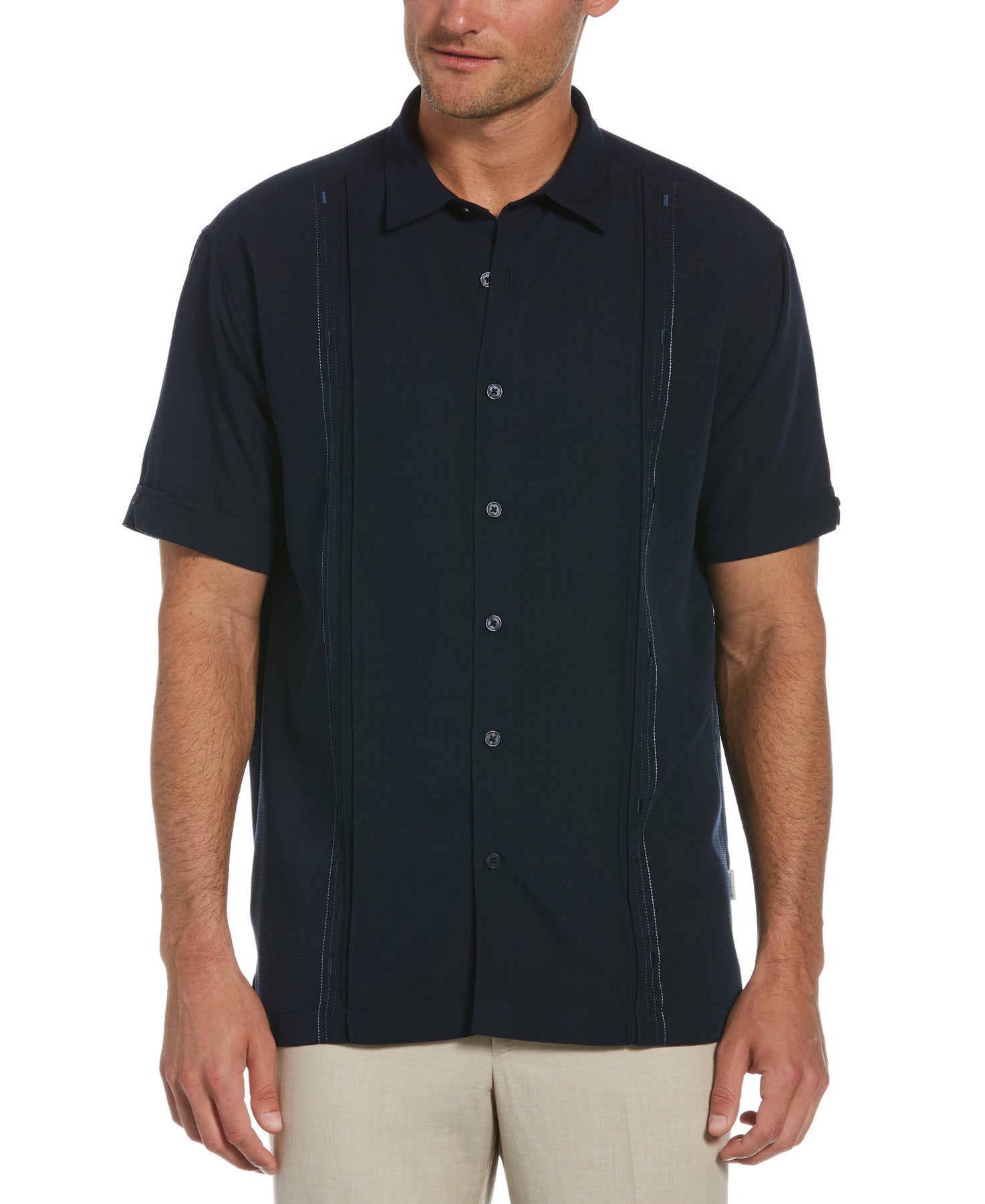 Cubavera's embroidered button-down shirt features double tuck detail and a unique textured look. The lightweight viscose-blend fabric of this short sleeve shirt is just what the warm season calls for. Wear it with Cubavera's linen pants for a comfortable, casual outfit.