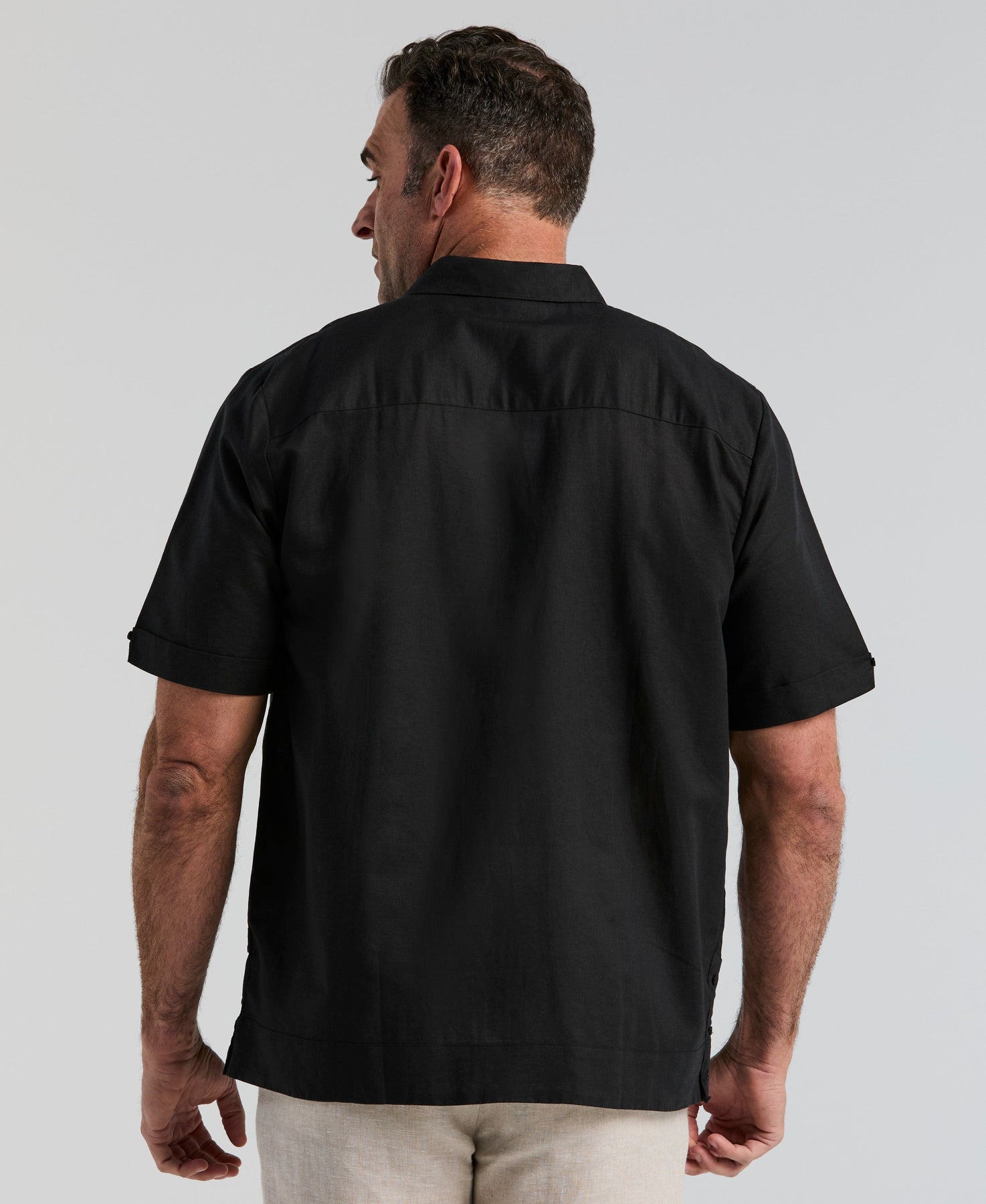 Big & Tall Linen Blend Guayabera Shirt (Jet Black)