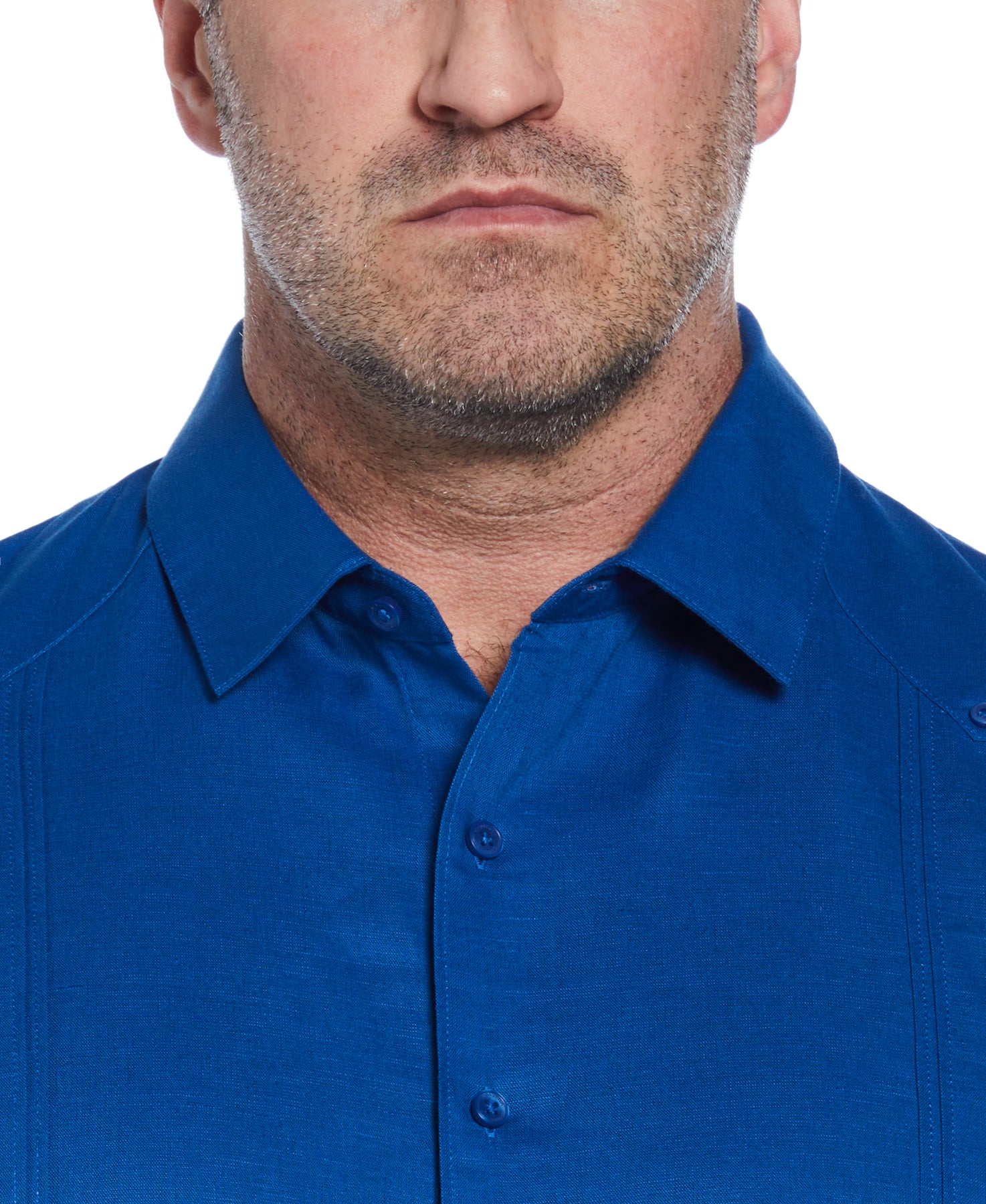 Elevate your weekend looks with this Cubavera men's linen blend guayabera shirt. Breathable linen-cotton blend delivers cool comfort without sacrificing durability. Classic design with vertical tucking elevates your warm-weather wardrobe. A timeless point collar completes this effortlessly cool button-down shirt you'll want to wear everywhere.