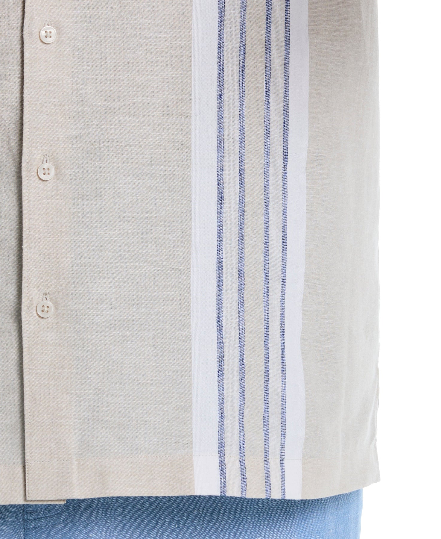 This stylish Cubavera men's short sleeve button up will bring classic-cool style to your closet. Made from breathable linen blend fabric, it will keep you comfortable and looking great. An eye-catching engineered panel design makes a subtle statement that elevates your look. A timeless point collar completes this handsome dobby button-down shirt.
