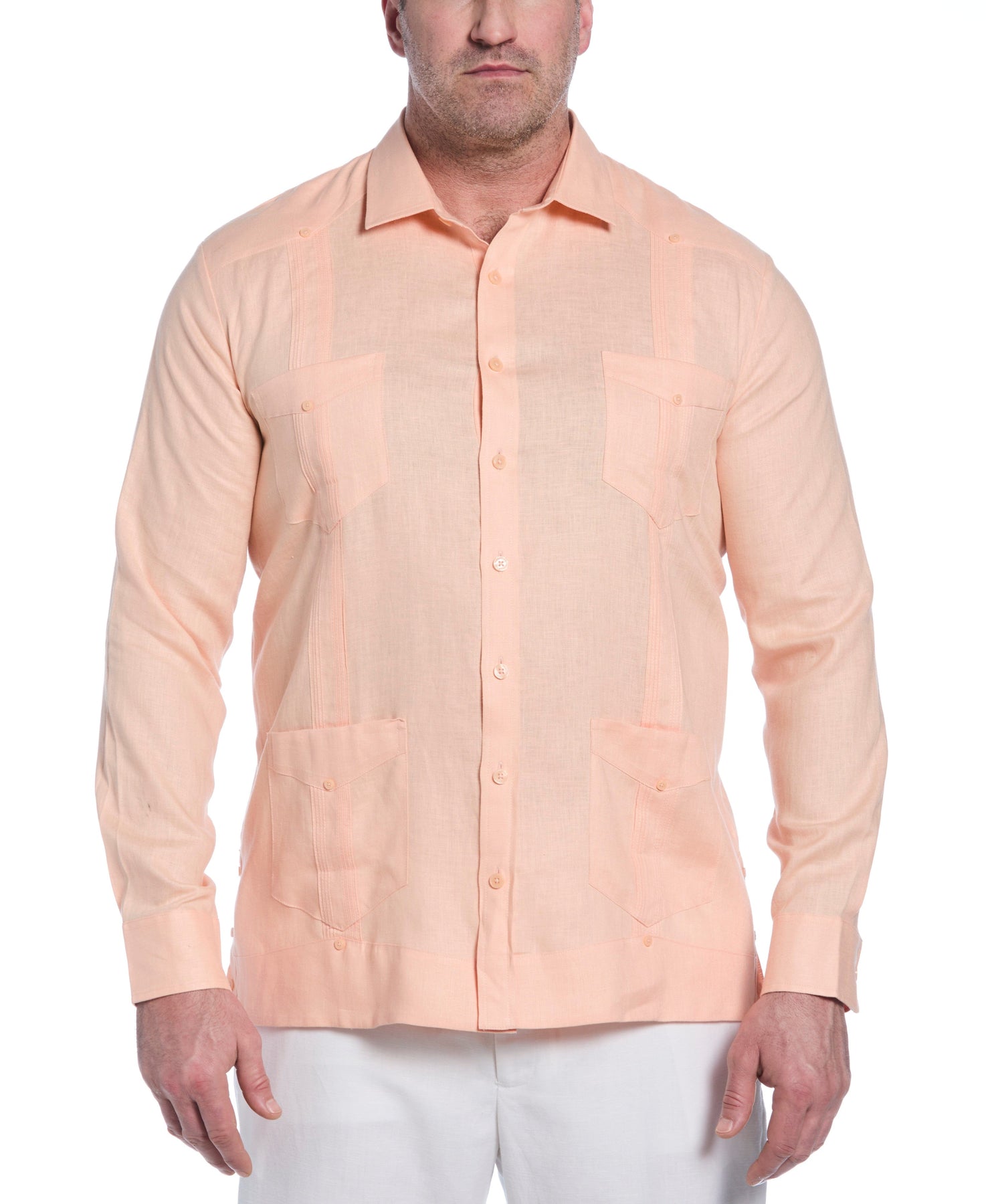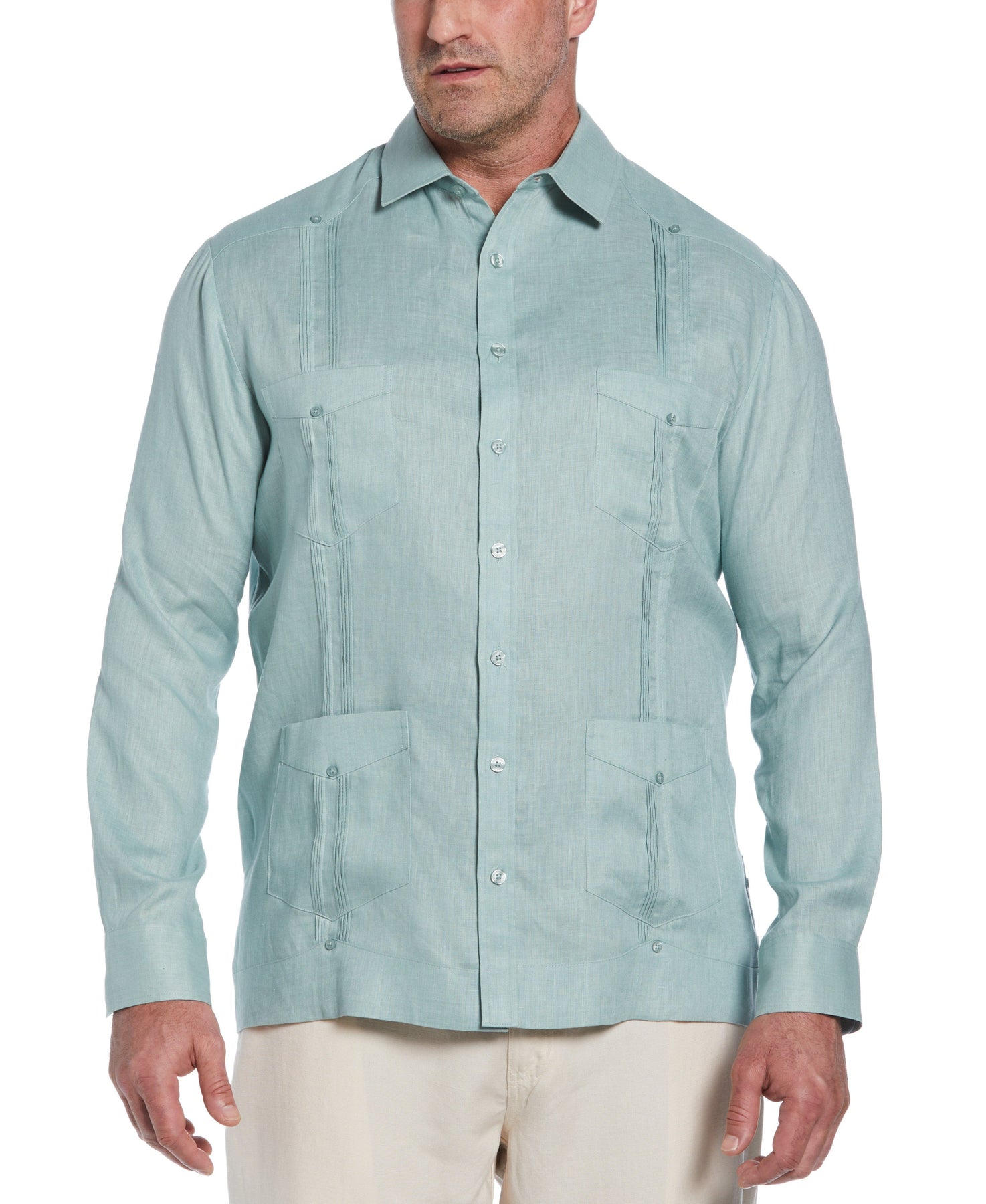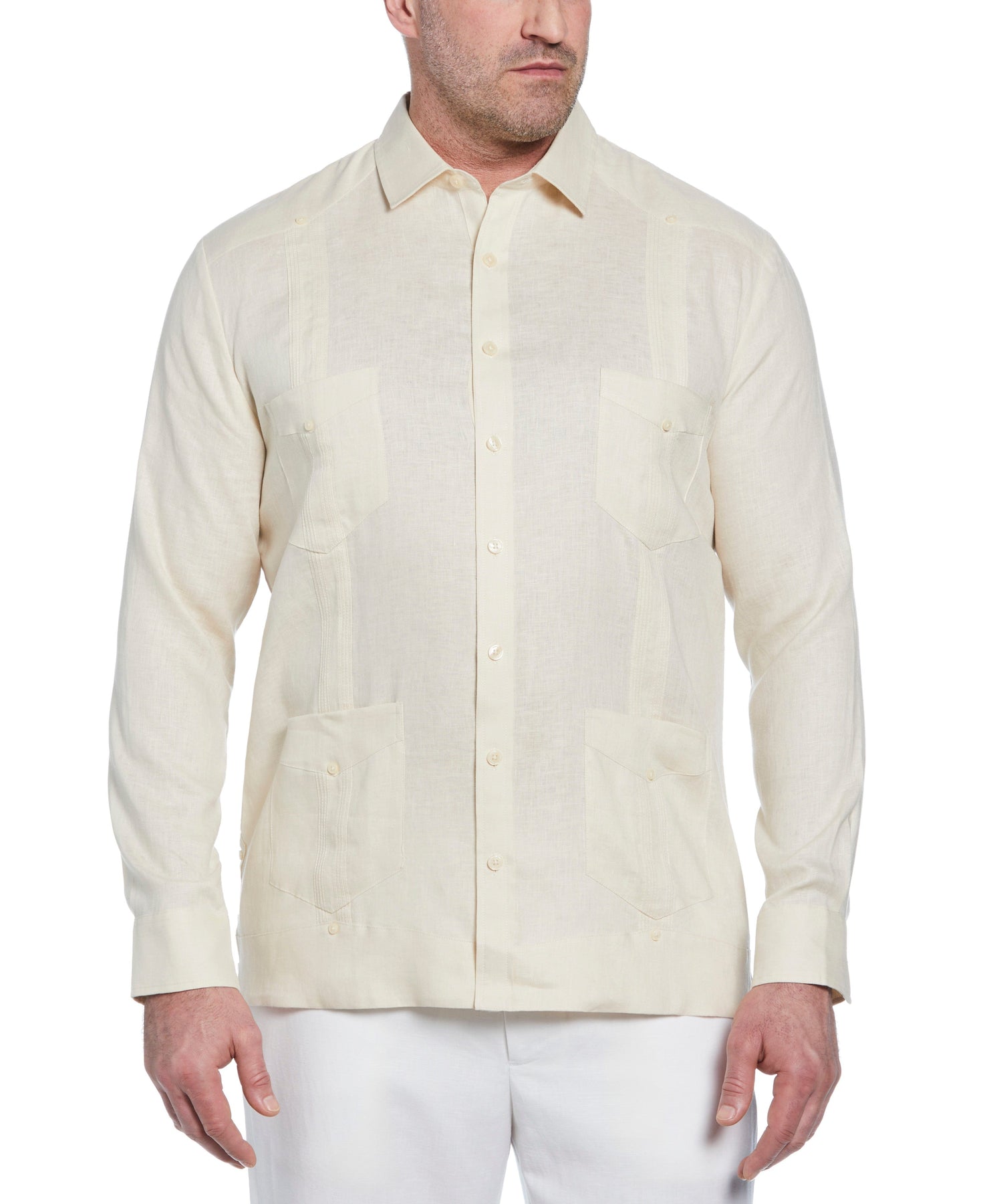 Enjoy warm weather days in style and comfort with this Cubavera men's long sleeve shirt. Breathable and lightweight 100% linen fabric offers impeccable warm weather comfort while the plain weave fabrication ensures lasting wear. Classic details add the final sophisticated touches for a go-to button-down shirt that looks great anywhere. Complete with a refined point collar for a stylish silhouette, pair this lightweight long-sleeve shirt with your favorite pants for an instantly sharp appearance.