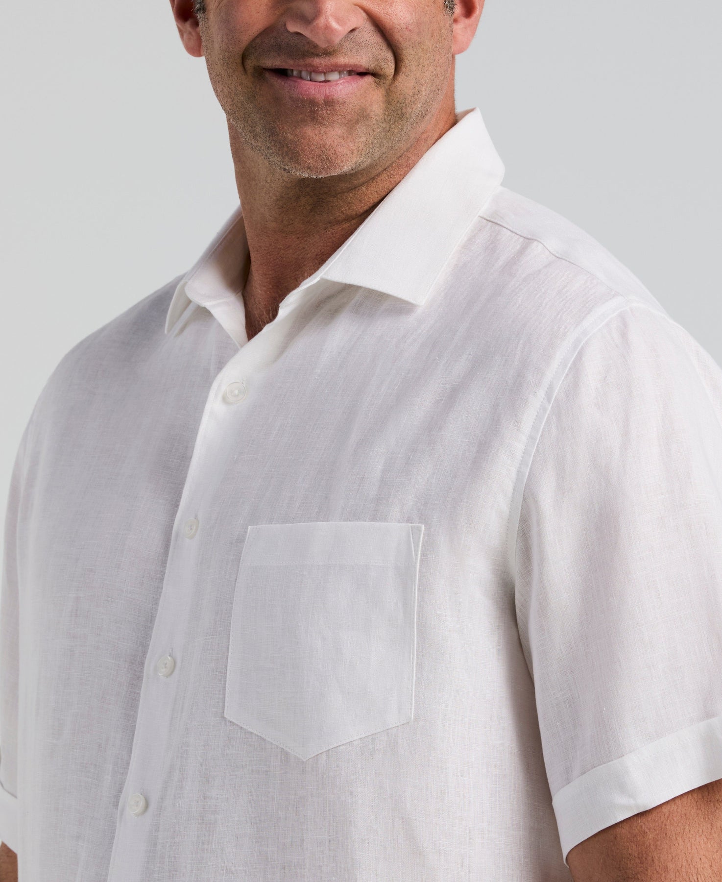 Experience effortless comfort and style in this Cubavera's men's short sleeve button-down shirt. Crafted from 100% linen, this durable plain weave shirt offers lightweight breathability in the warm weather. The cuffed sleeves and chest pocket add visual interest while keeping this short sleeve linen shirt versatile and practical.