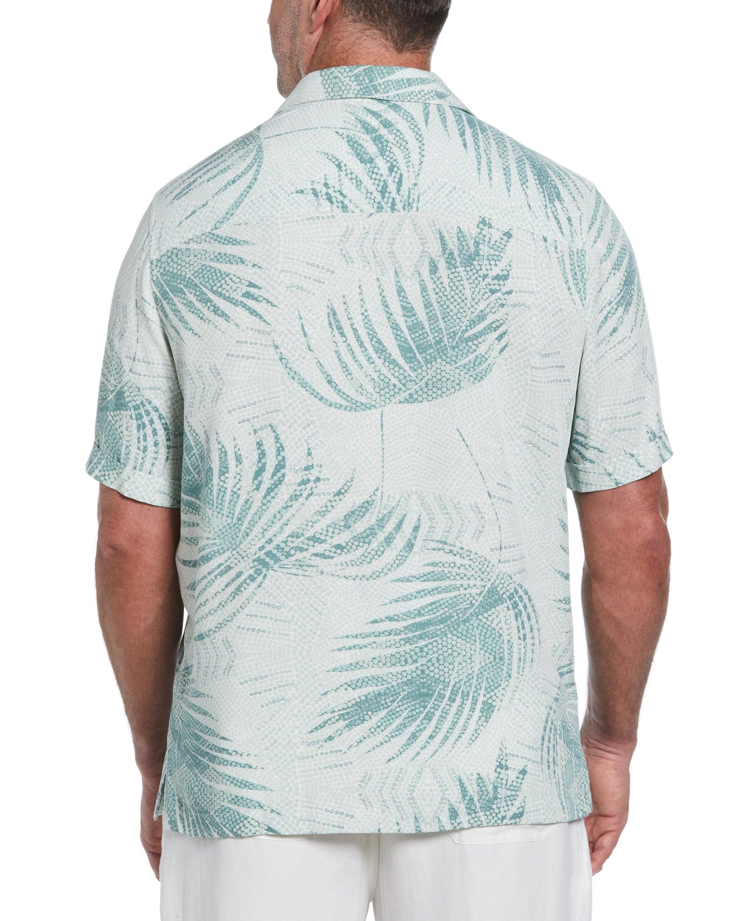 Embrace cool tropical style with this soft-draping Cubavera men's short sleeve button-down shirt. A palm dotted print pops with a fresh, modern look while the Cuban collar adds laidback retro charm.