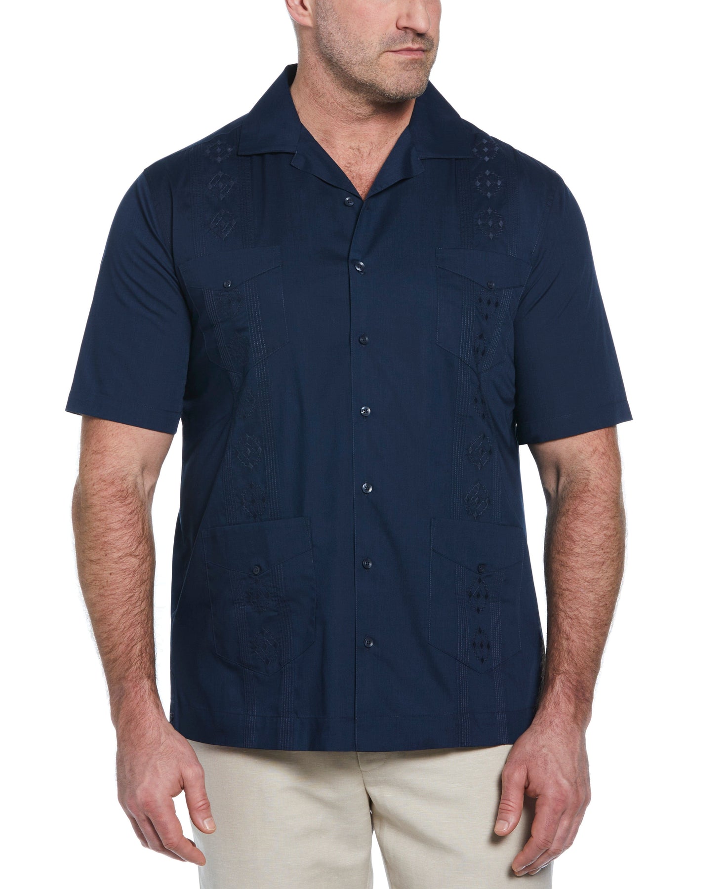Step out in versatile, timeless style with this Cubavera men's short sleeve button up shirt. A classic Cuban camp collar adds retro style and flair. Poplin fabrication delivers crisp style, and this classic solid-color button-down shirt is machine washable for your convenience.