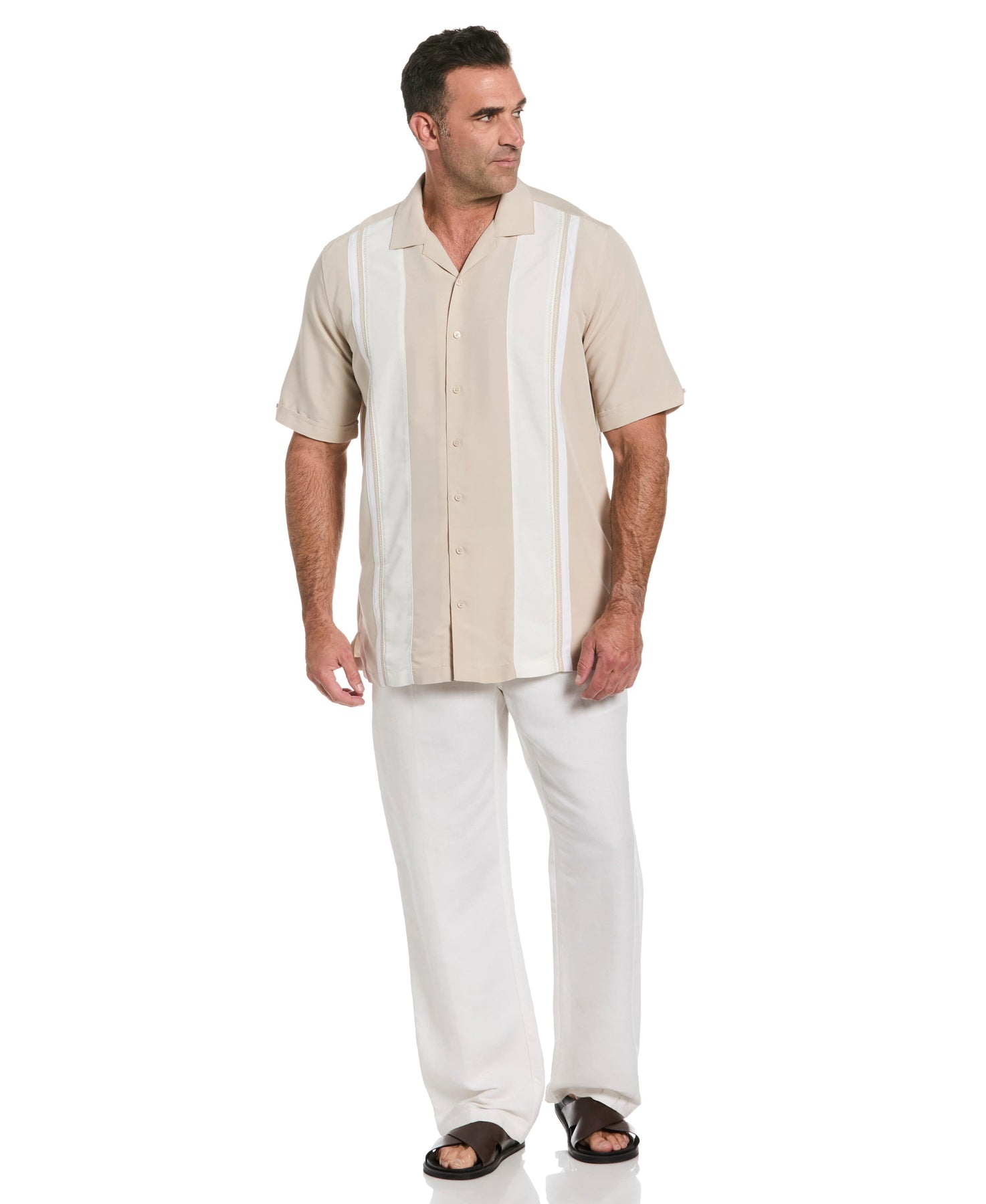 Elevate your closet essentials with this Cubavera men's short sleeve button up shirt. The easy care, soft touch fabric make this shirt your reach to choice for an instantly comfortable feel, on vacation or a night out with friends. An iconic vintage inspired color block and traditional camp collar adds just the right amount of swagger to any style.