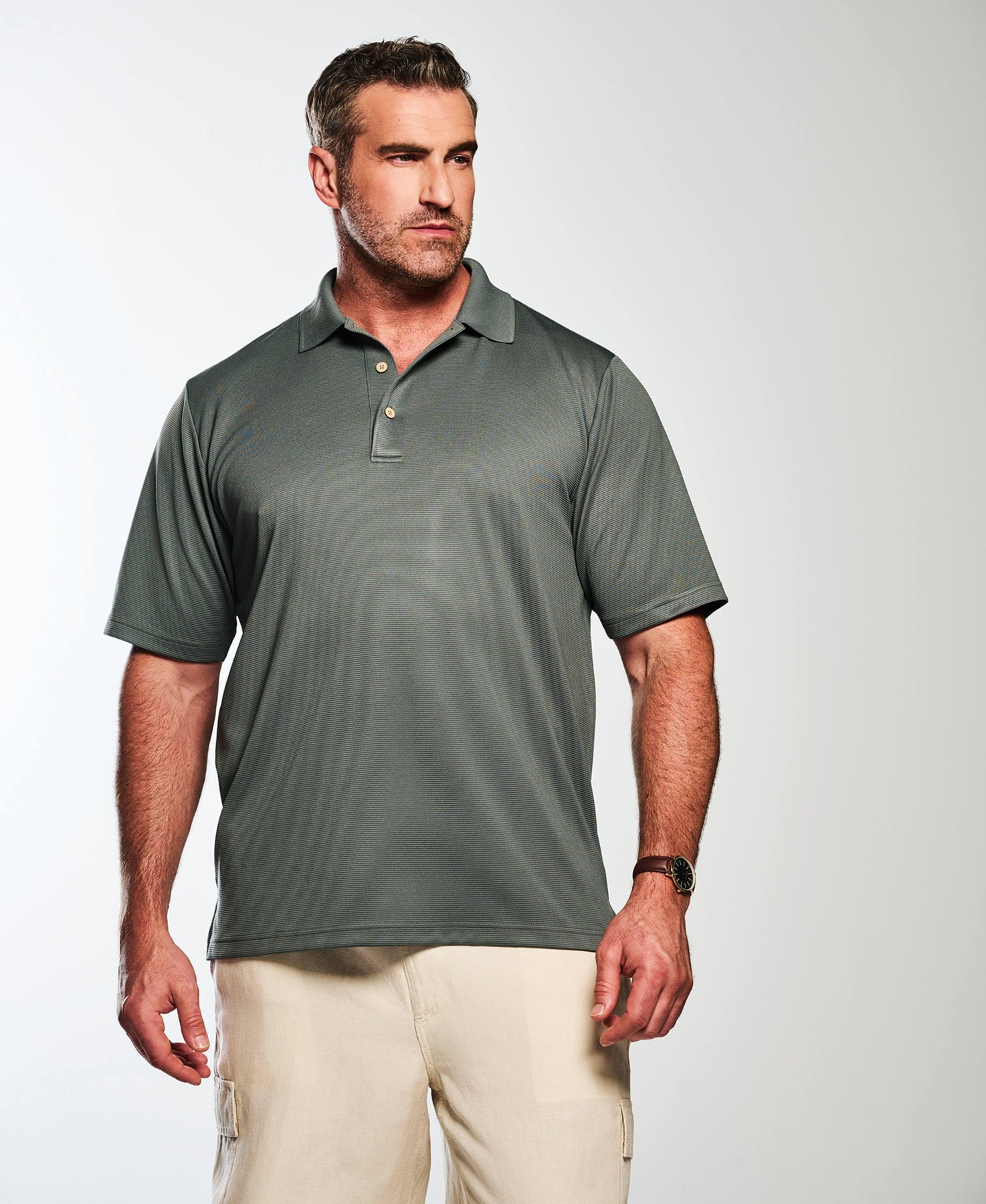 It's no wonder why we call this men's shirt our Essential Polo. Made of 100% polyester with moisture wicking, our Essential Polo will keep you cool, dry and comfortable, whether you spend your weekends golfing or relaxing poolside. If you're more of an office polo kind of guy, you're in luck too. This men's polo can be easily dressed up with a jacket and dress pants or worn tucked in with slacks for a more casual work outfit.