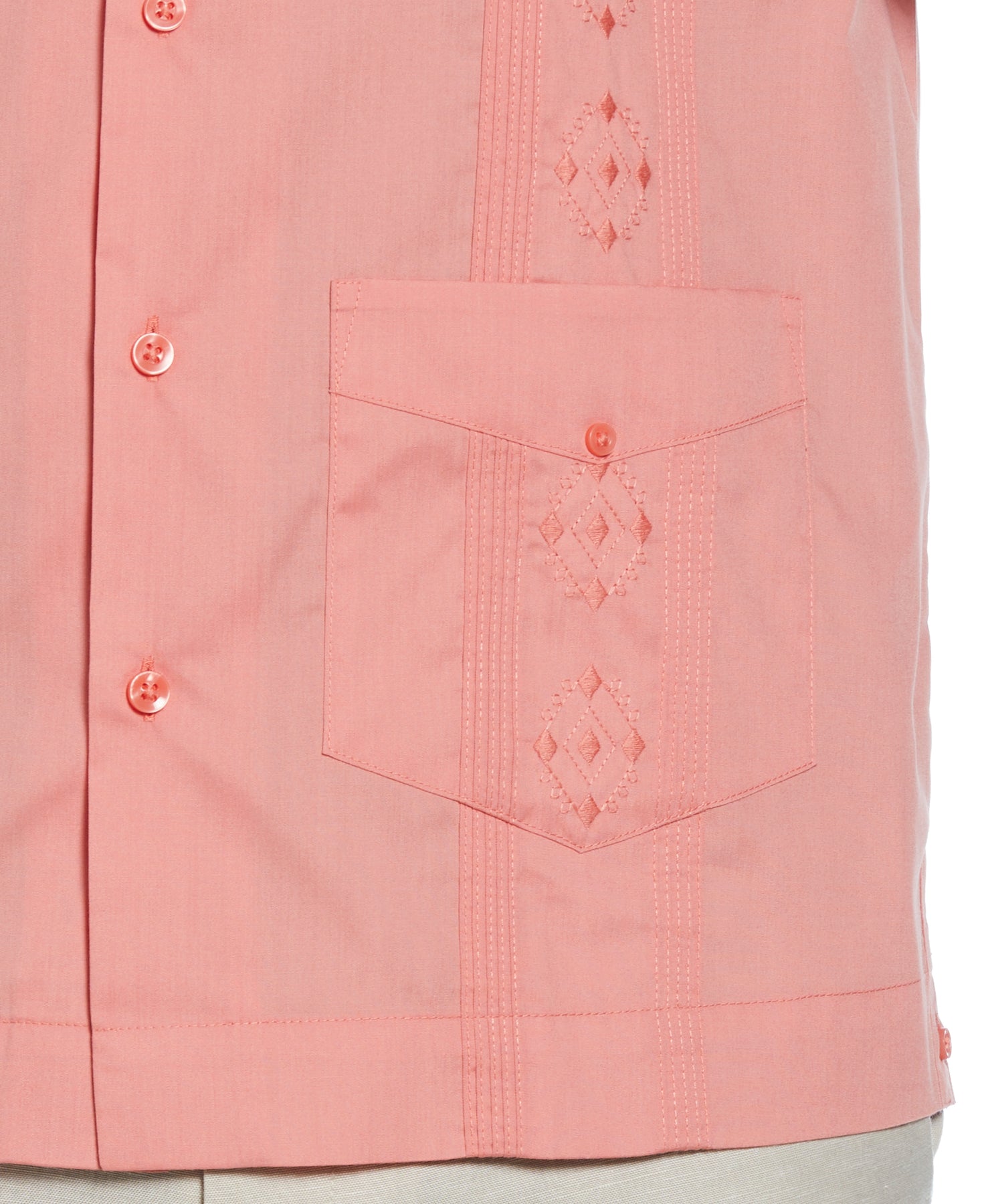 This Cubavera men's short sleeve shirt provides the perfect combination of vintage and modern styles. With breezy short sleeves, its camp collar gives off a truly retro feel that stands out in a subtle manner. And with quick dry fabric and easy care, what more could you want? This button-down guayabera will be turning heads for many wears to come.