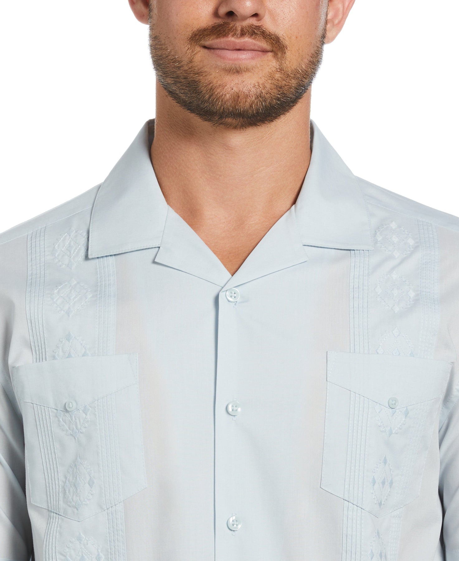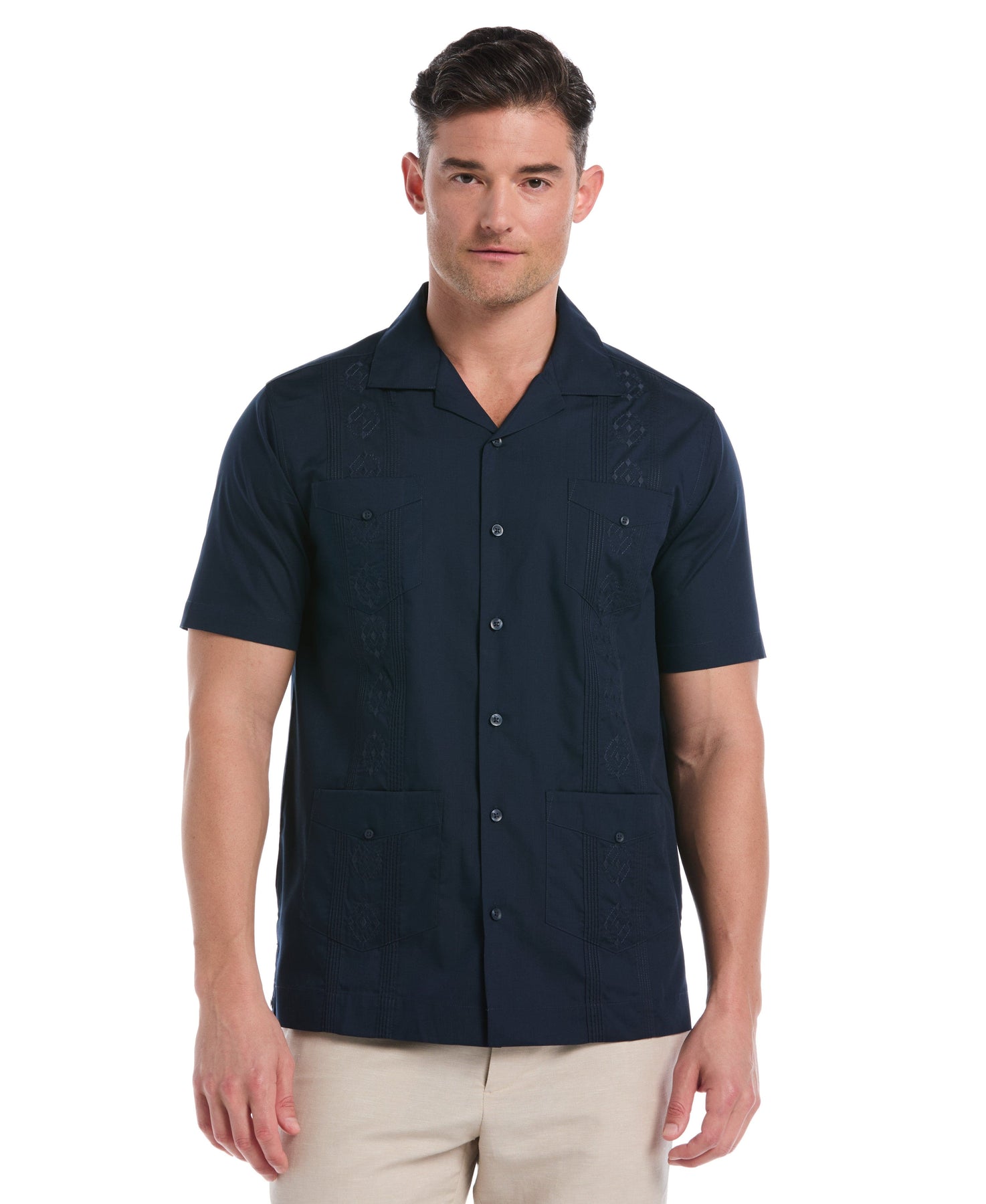 This Cubavera men's short sleeve shirt provides the perfect combination of vintage and modern styles. With breezy short sleeves, its camp collar gives off a truly retro feel that stands out in a subtle manner. And with quick dry fabric and easy care, what more could you want? This button-down guayabera will be turning heads for many wears to come.