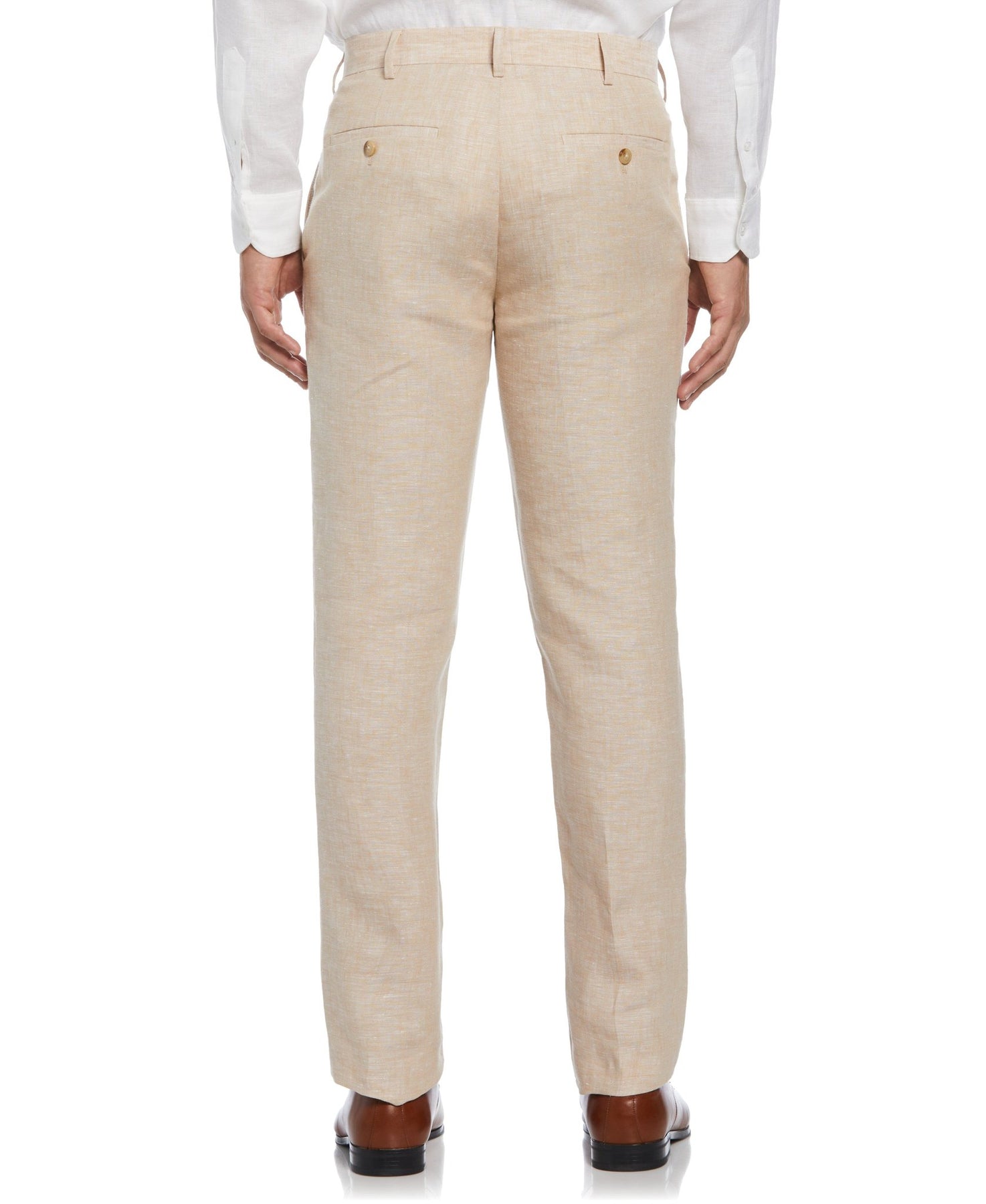 A true essential that will never go out of style. Lightweight and breathable, these sophisticated men’s dress pants are cut from 100% Delave linen - a top tier linen with a high-low heathered look and unique texture. This flat front style and straight leg fit creates a modern and sleek silhouette.