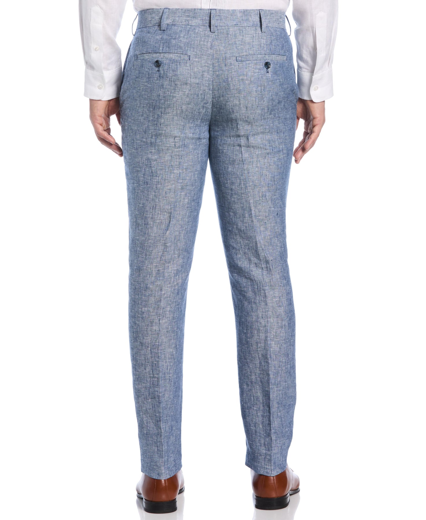 A true essential that will never go out of style. Lightweight and breathable, these sophisticated men’s dress pants are cut from 100% Delave linen - a top tier linen with a high-low heathered look and unique texture. This flat front style and straight leg fit creates a modern and sleek silhouette.