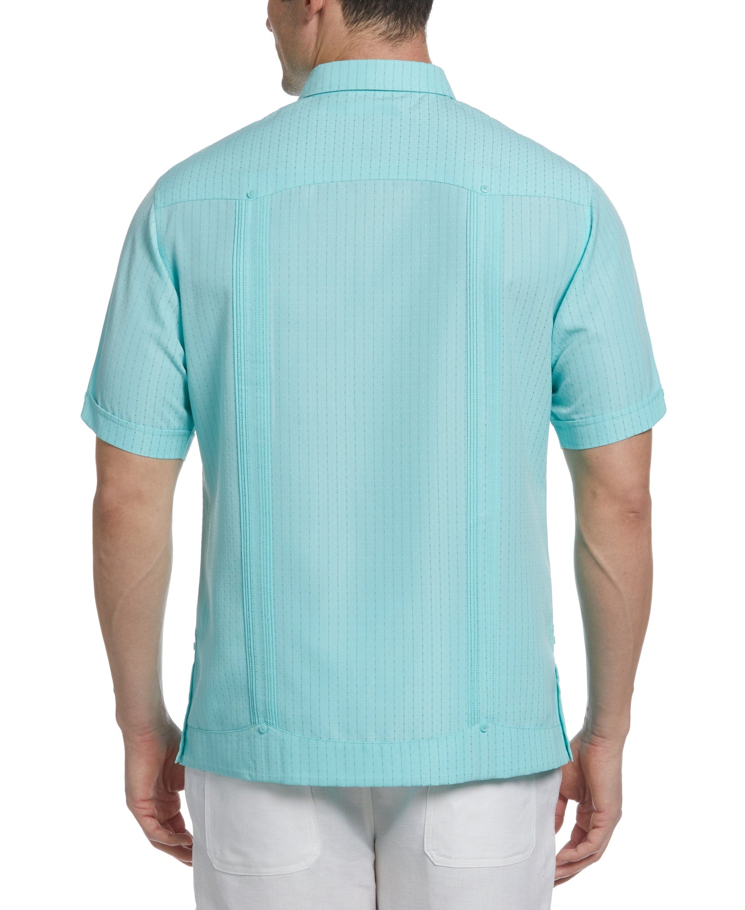Enjoy timeless style with a modern twist. This short sleeve button-down shirt features the two-pocket panel styling you love in a classic Guayabera shirt. An eco-friendly fabric will suit your contemporary lifestyle. Dobby fabrication provides subtle texture, ensuring this shirt feels as good as it looks. Pair it with a Panama hat and Cubavera linen pants for the ultimate polished casual look.