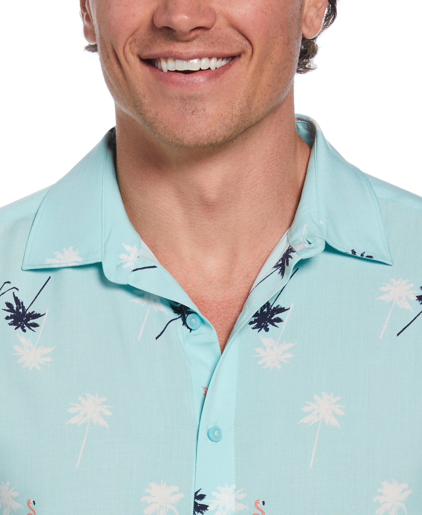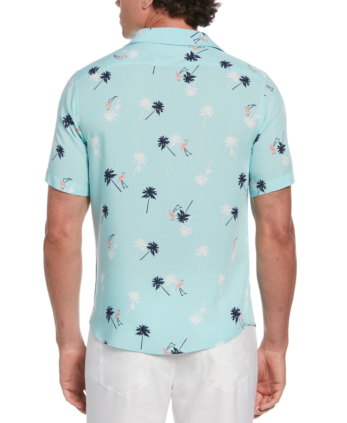 This Cubavera men's pattern shirt elevates your warm-weather wear with a playful flamingo print. Made from 100% viscose with durable plain weave fabrication, this lightweight short sleeve dress shirt offers smooth-draping comfort. The versatile shirt is perfect for both casual and semi-formal occasions.