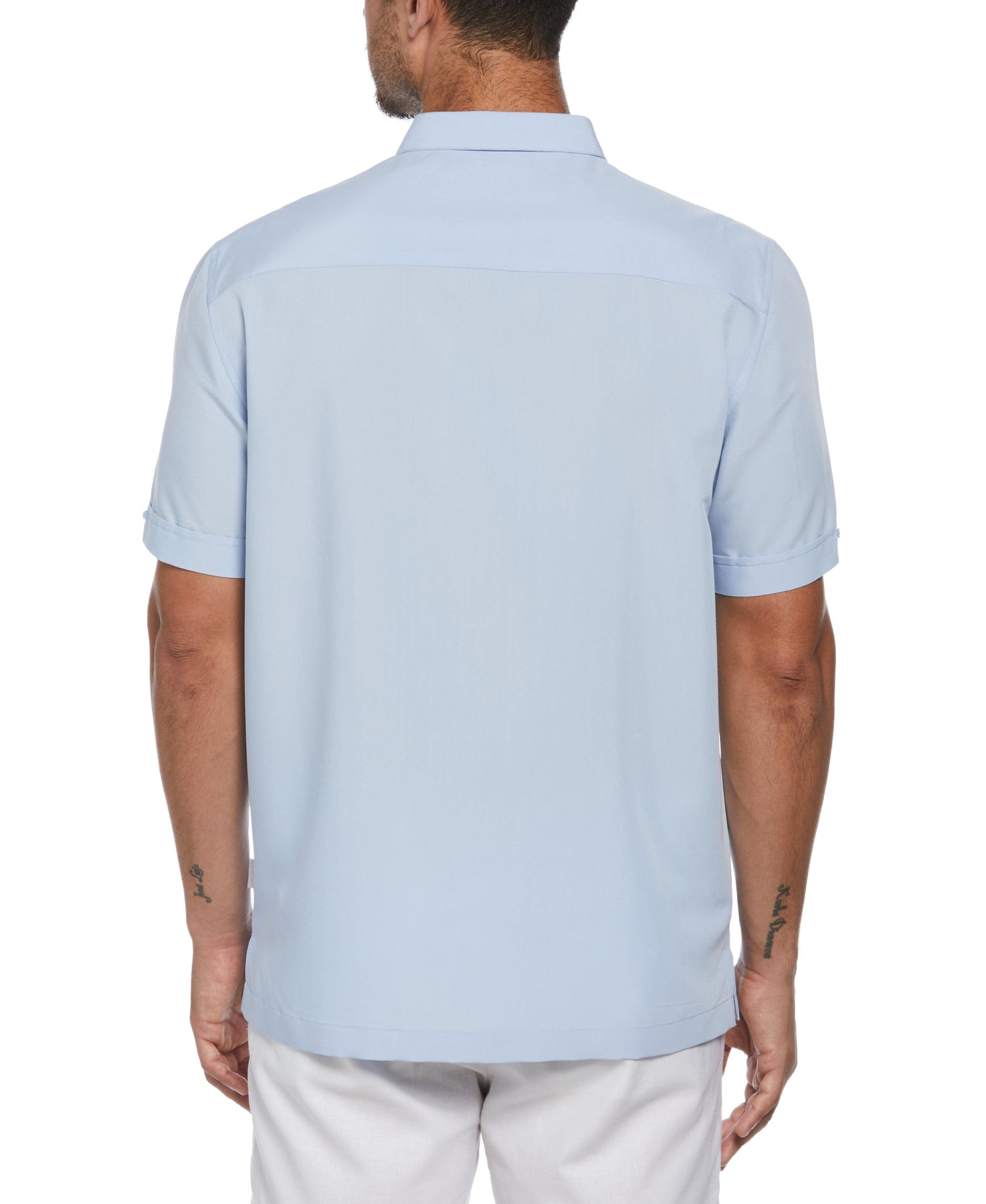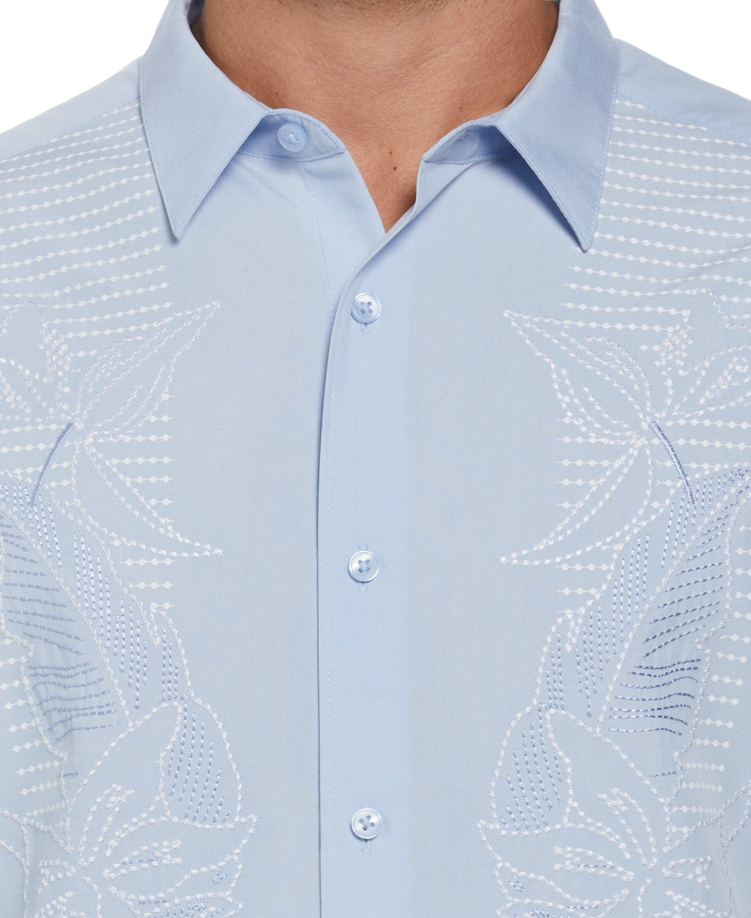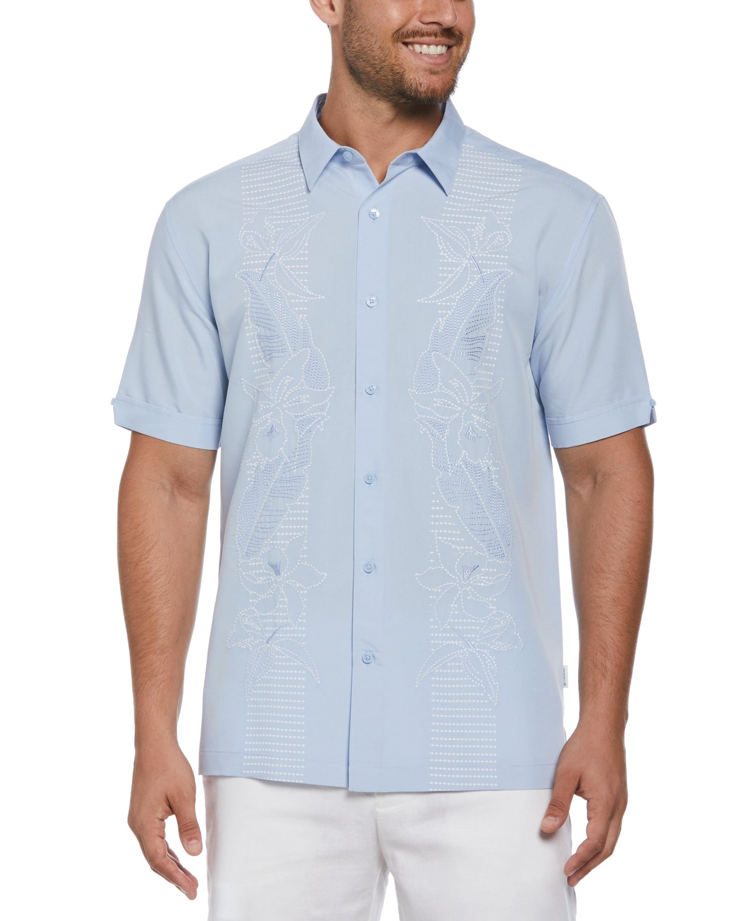 Revamp your wardrobe with this short sleeve button-up from Cubavera. Featuring eye-catching floral embroidery down the front panels, this men's short sleeve button-down shirt is a great choice for sunny days out on the town. Crafted from a smooth blend of viscose and polyester, the fabric is made with a tight plain weave to help ensure long-lasting wear. A crisp point collar and cuffed sleeves complete the clean and casual design.