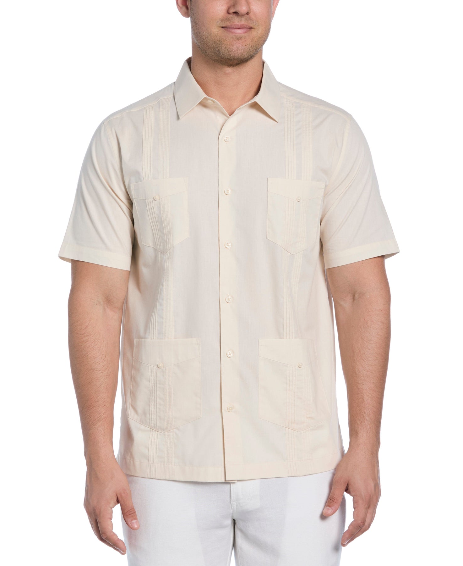 Elevate your look with this Latin-inspired men's guayabera shirt from Cubavera. Poplin fabrication in a plain weave creates a lightweight shirt with impressive durability. Complete with four pockets, vertical embroidered pleats and a polished point collar, the short sleeve button-down shirt brings flair to your fashionable wardrobe.