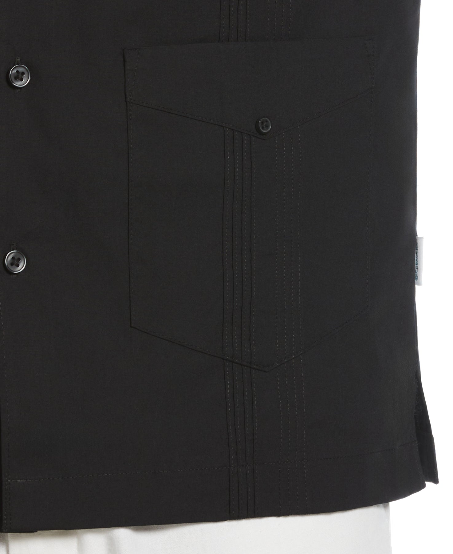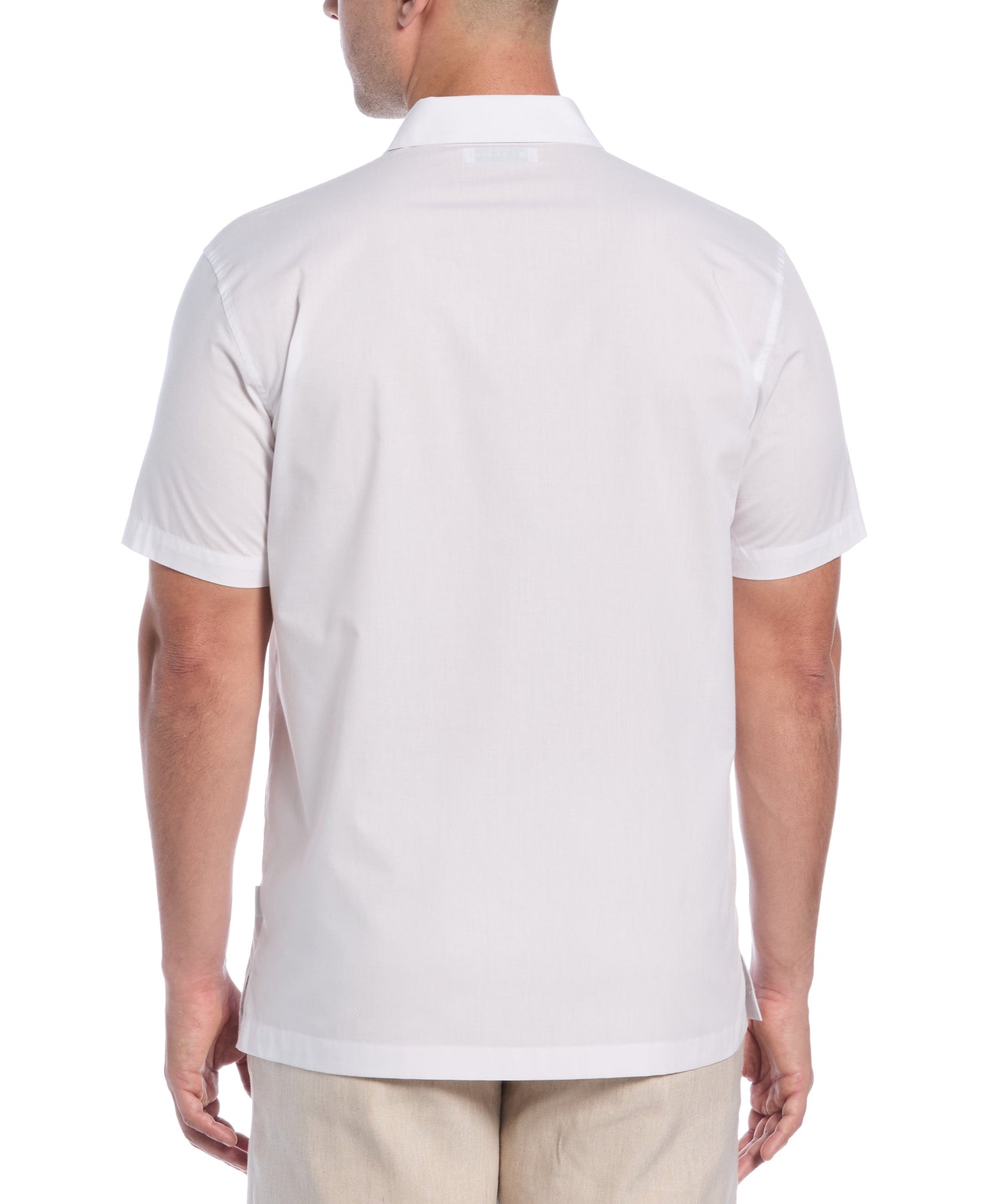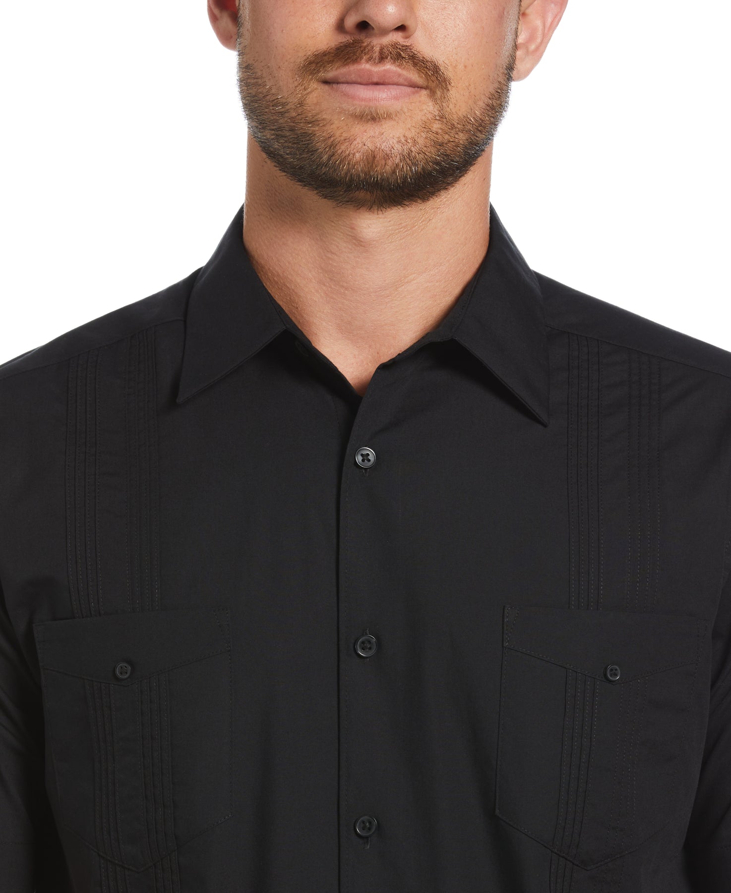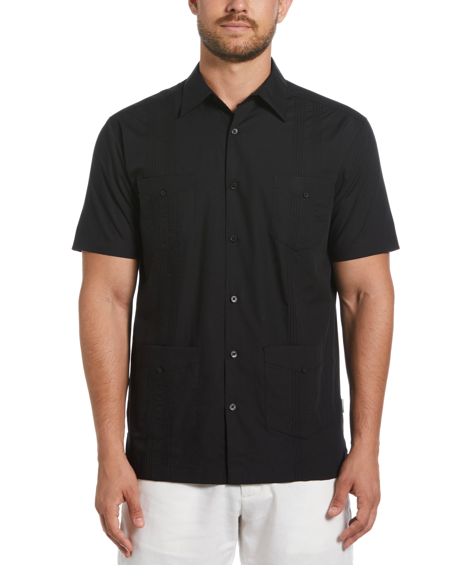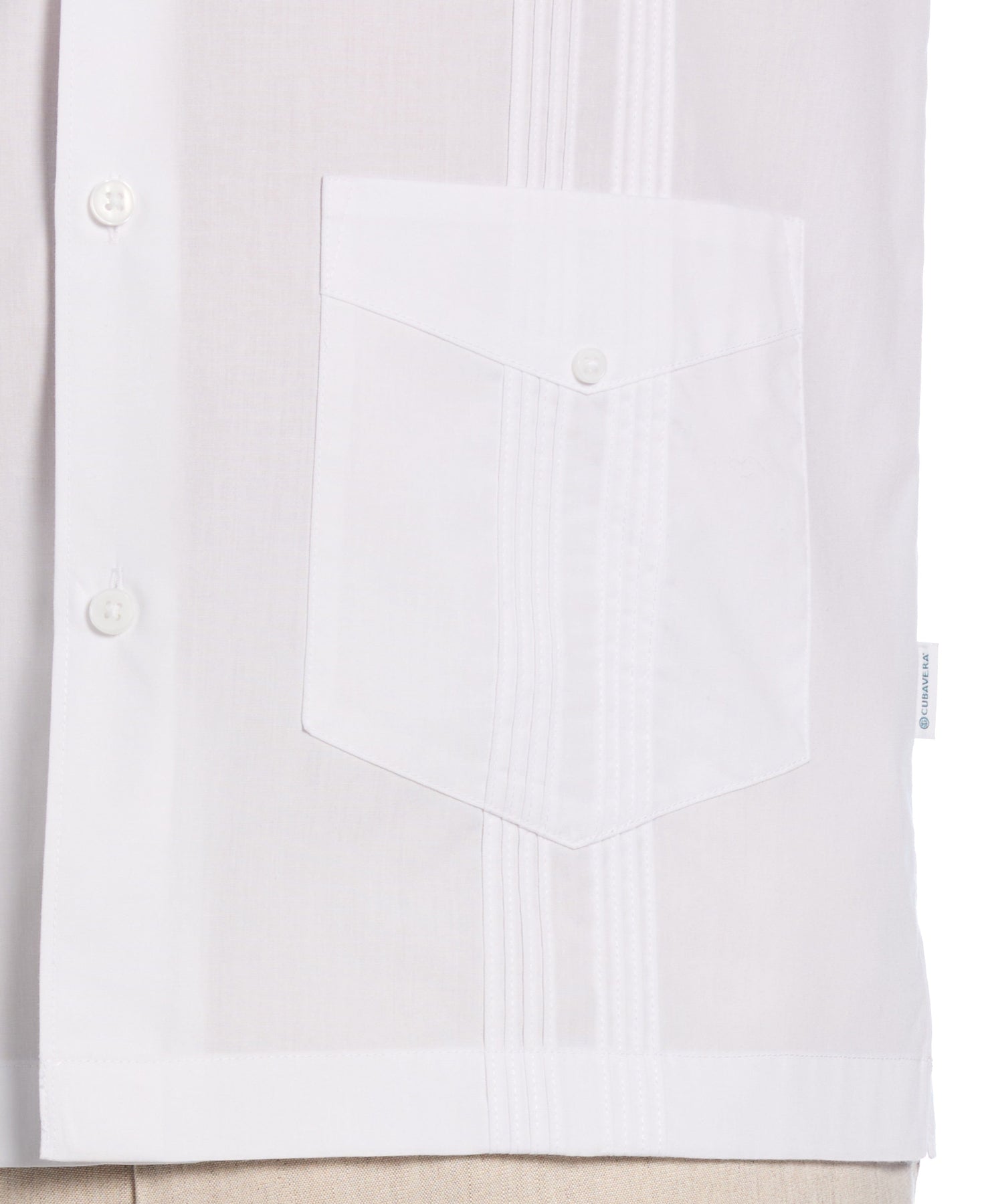 Elevate your look with this Latin-inspired men's guayabera shirt from Cubavera. Poplin fabrication in a plain weave creates a lightweight shirt with impressive durability. Complete with four pockets, vertical embroidered pleats and a polished point collar, the short sleeve button-down shirt brings flair to your fashionable wardrobe.