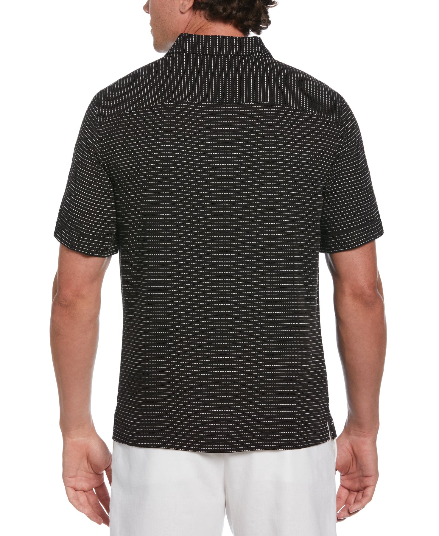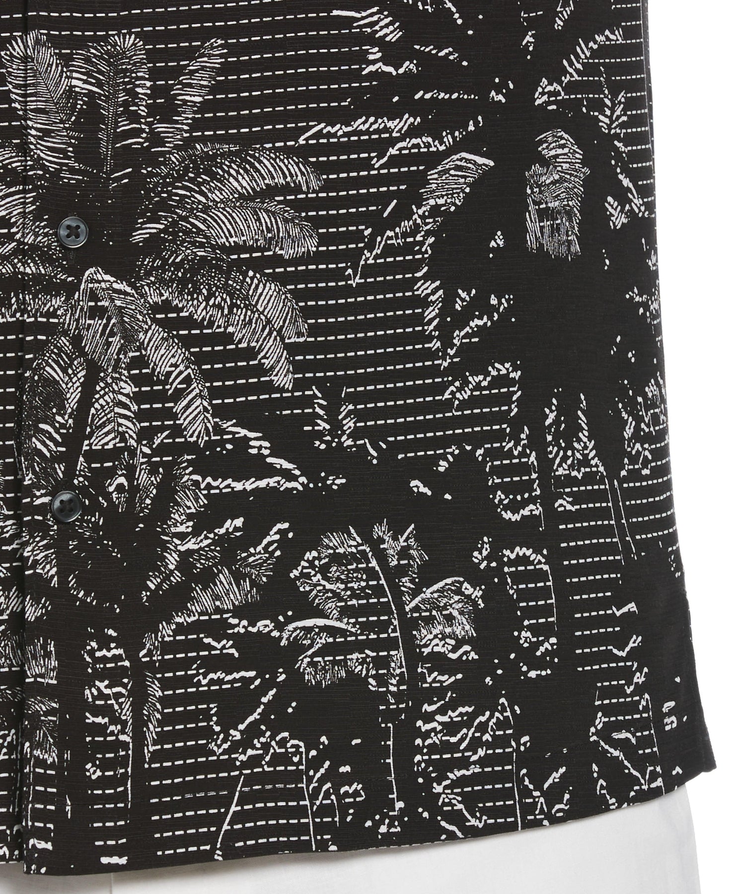 This Cubavera short sleeve button-down shirt puts a tropical twist on your cool, casual look. The soft-draping, textured fabric feels great against your skin and a geometric print with palm trees around the border kicks the style factor up a notch. With a straight hem for a clean untucked silhouette, this men’s pattern shirt is the perfect laidback complement to our linen shorts or pants.