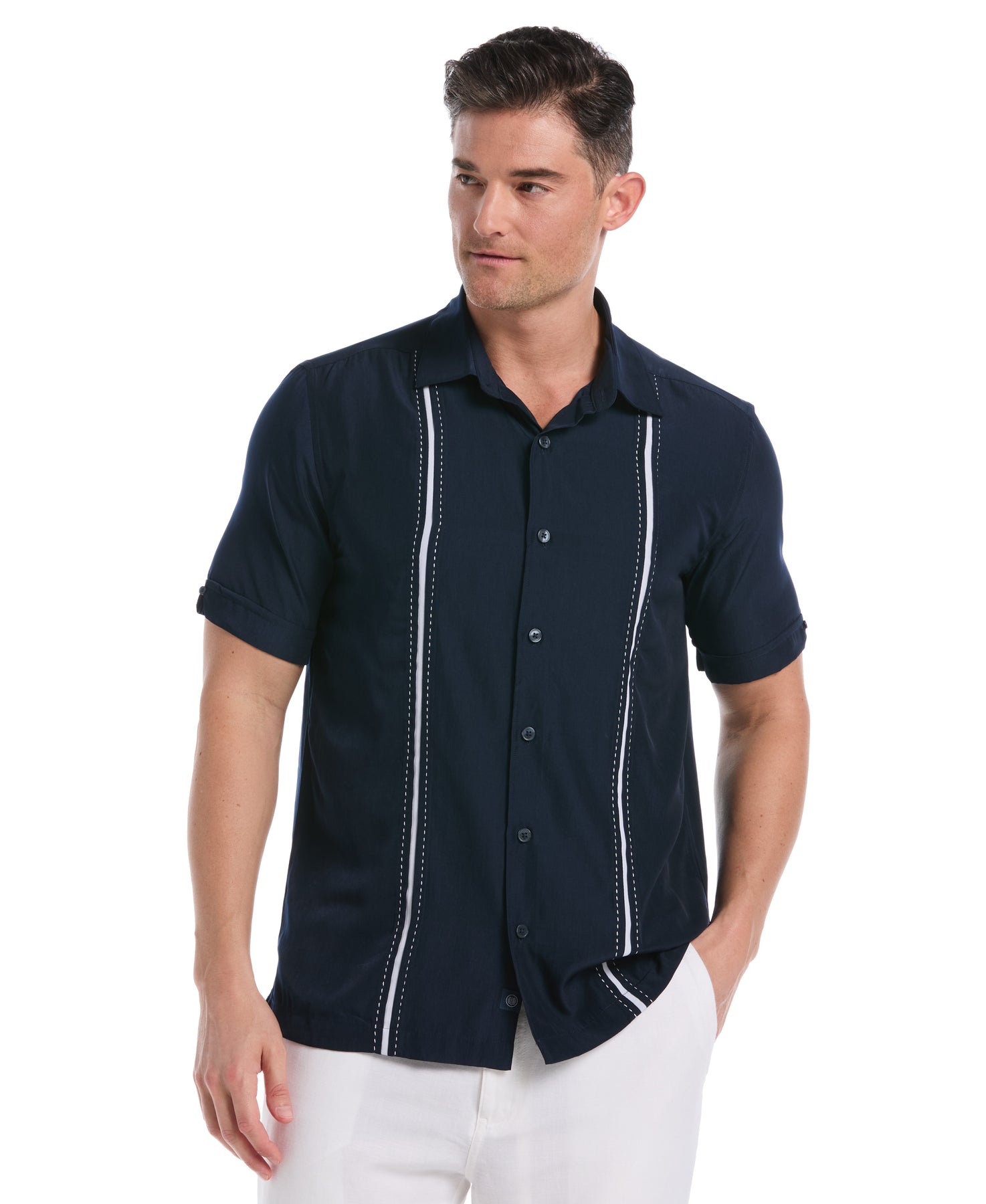 Look smart and stylish in this Cubavera men's short sleeve button up shirt. Soft Touch plain weave fabric delivers comfortable durability. Pickstitching detail elevates the design and offers a modern twist. The paneled design also helps create a stylish touch and streamline your appearance. Wear it to the office with trousers, or style it casually with shorts on weekends. This button-down shirt can do it all.