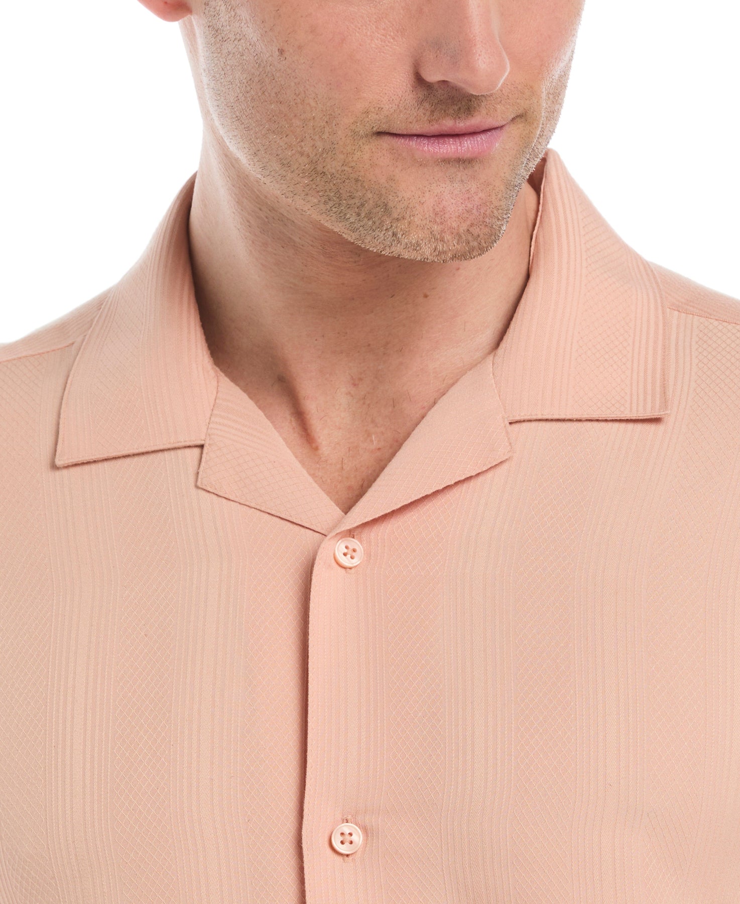 Evoke sleek sophistication in this Cubavera men's short sleeve button up shirt that's easy to dress up or down. The geometric jacquard knit adds just the right touch of texture, while the easy viscose blend fabric is light and comfortable for all-day wear. A Cuban collar completes the look and adds a retro touch to this modern classic.