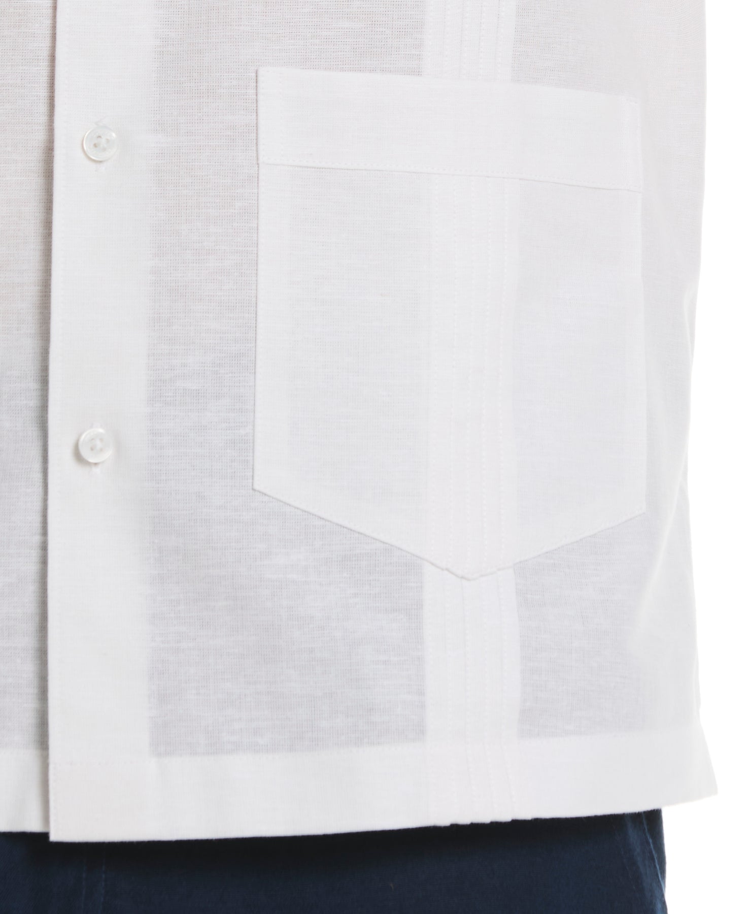 Style basics don't have to look boring with this Cubavera men's short sleeve button up that delivers a contemporary twist on a traditional guayabera shirt. Linen blend plain weave fabric offers breathable all-day comfort paired with superior durability. The point collar is a classic touch, while the 4-pocket design creates a casual vibe. Pair with your favorite shorts or jeans for effortless style that goes anywhere.