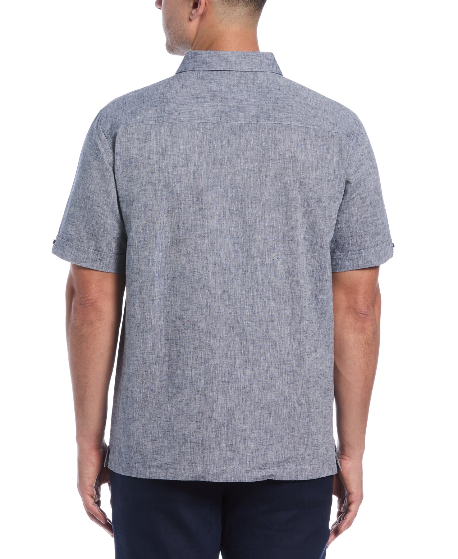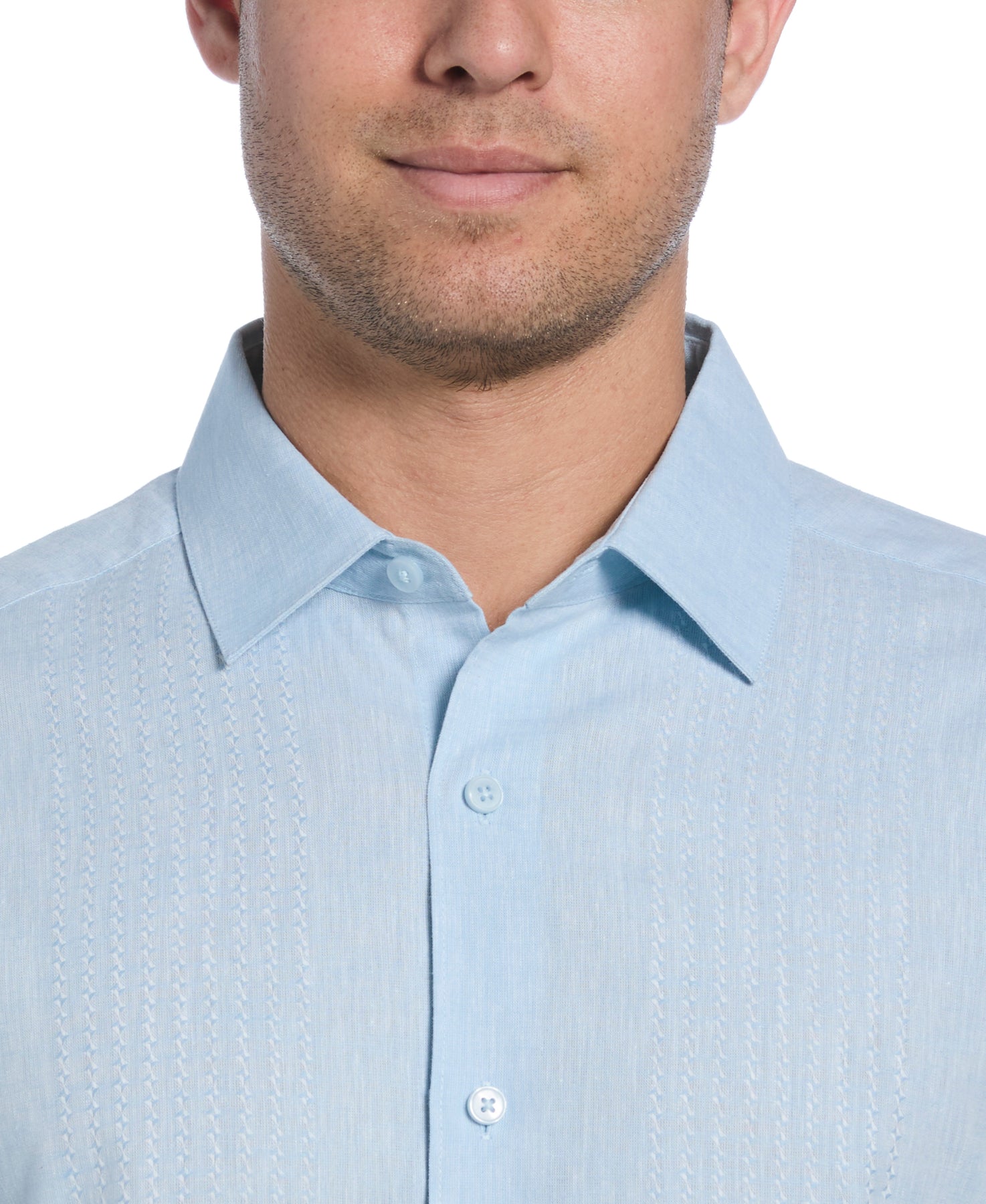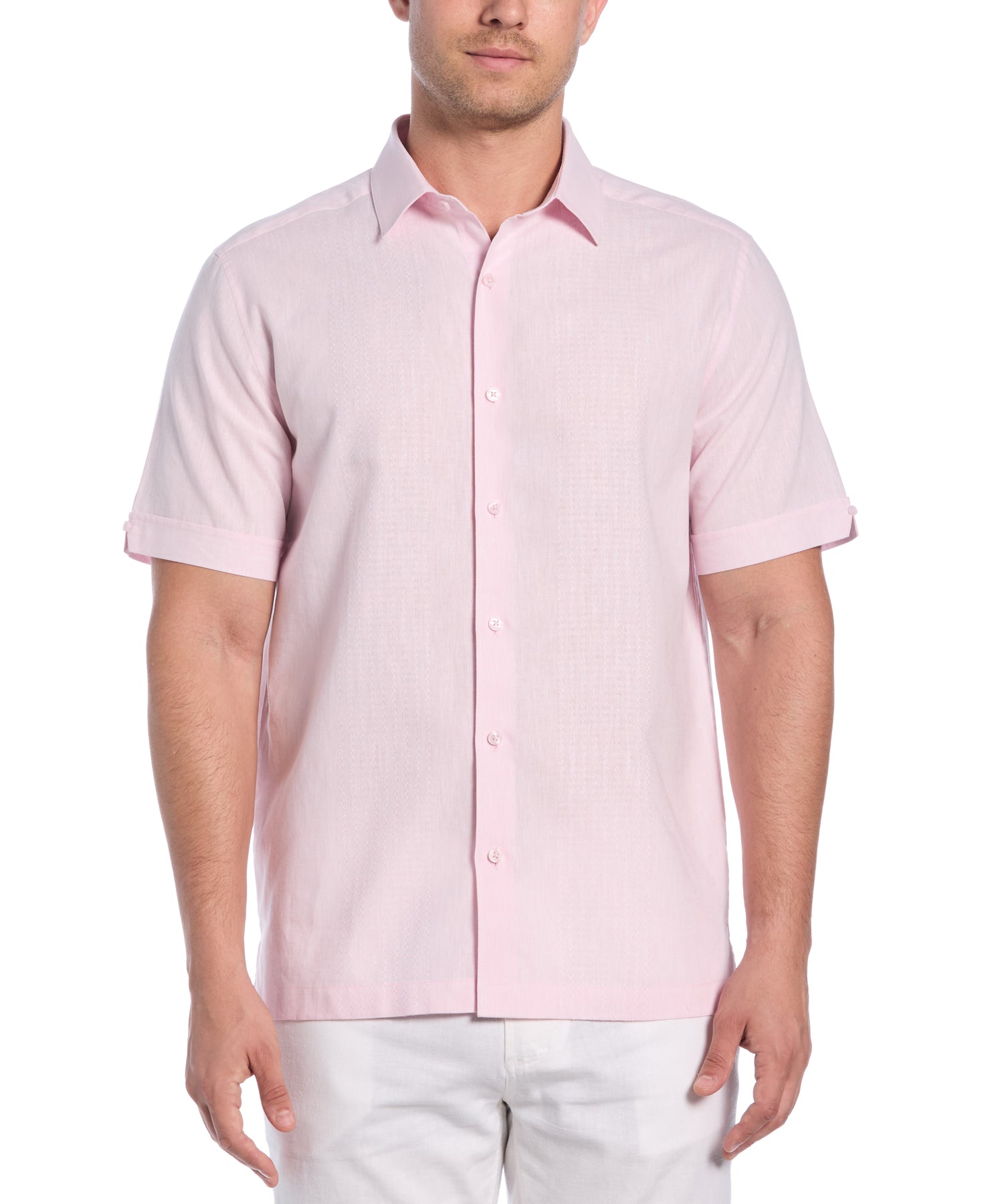 This men's Cubavera short sleeve button-down shirt is an instant classic with its versatile solid color and textured dobby panels. An effortlessly elegant option you can easily dress up or down, this men's shirt is crafted from a durable linen-cotton blend that allows for breathable comfort in the warmer weather.