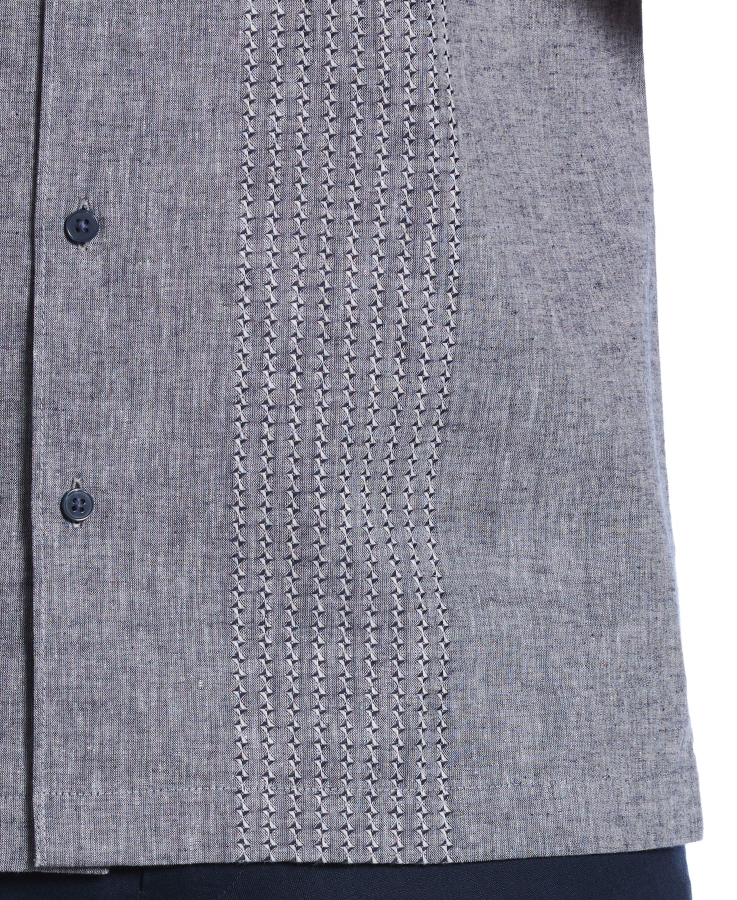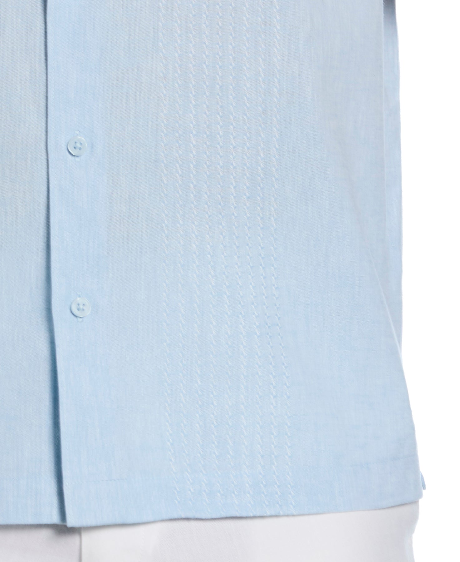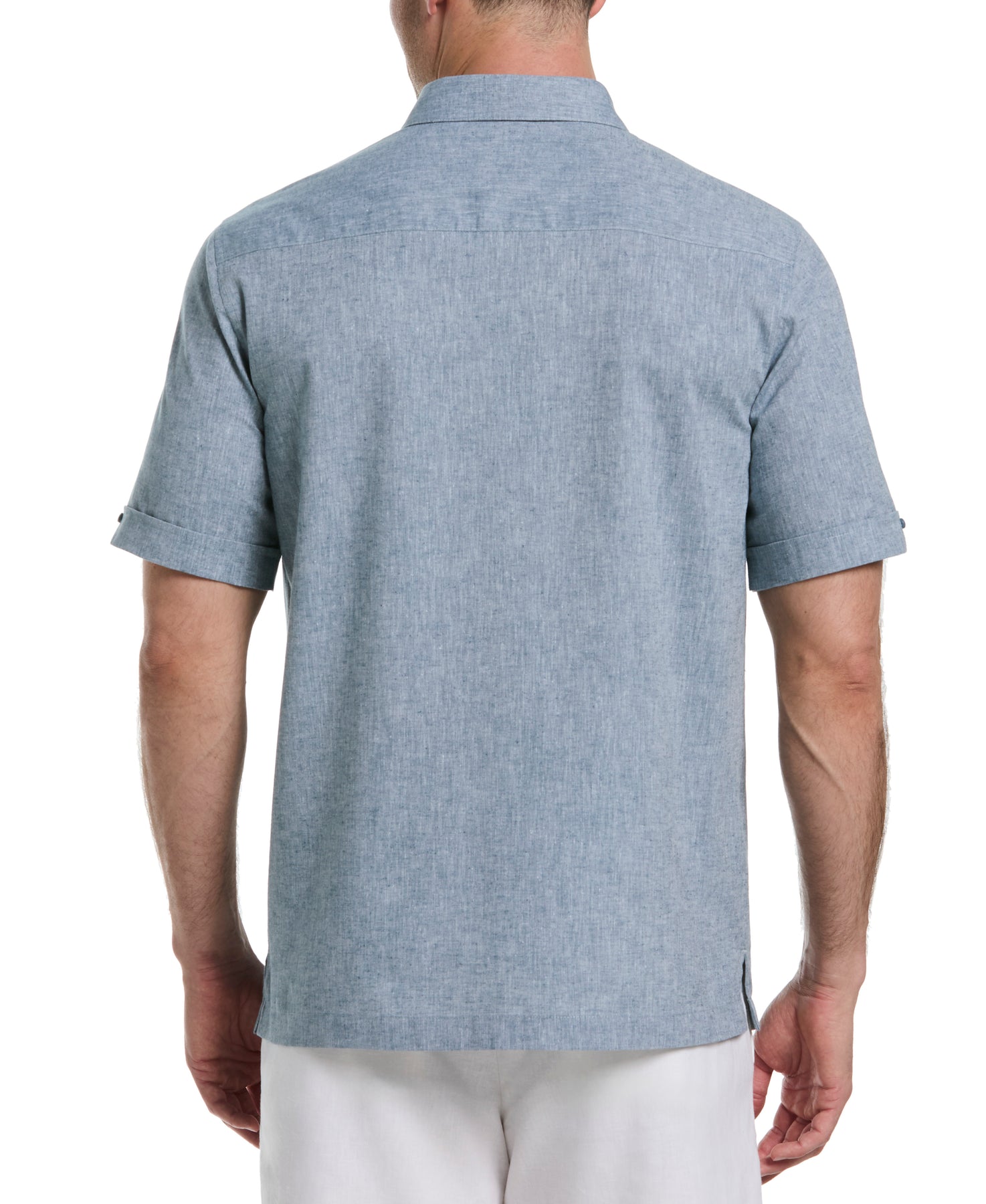 This men's Cubavera short sleeve button-down shirt is an instant classic with its versatile solid color and textured dobby panels. An effortlessly elegant option you can easily dress up or down, this men's shirt is crafted from a durable linen-cotton blend that allows for breathable comfort in the warmer weather.