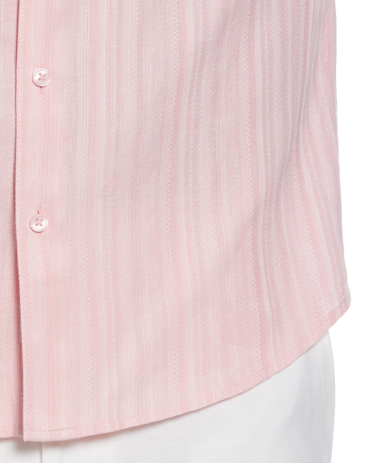 This men's pattern shirt from Cubavera is the epitome of refined casual style. Featuring a versatile striped pattern, this short sleeve dress shirt is made from a lightweight linen-cotton blend with textured dobby fabrication for a sophisticated finish. Cuffed short sleeves and a left chest pocket complete the classic look.