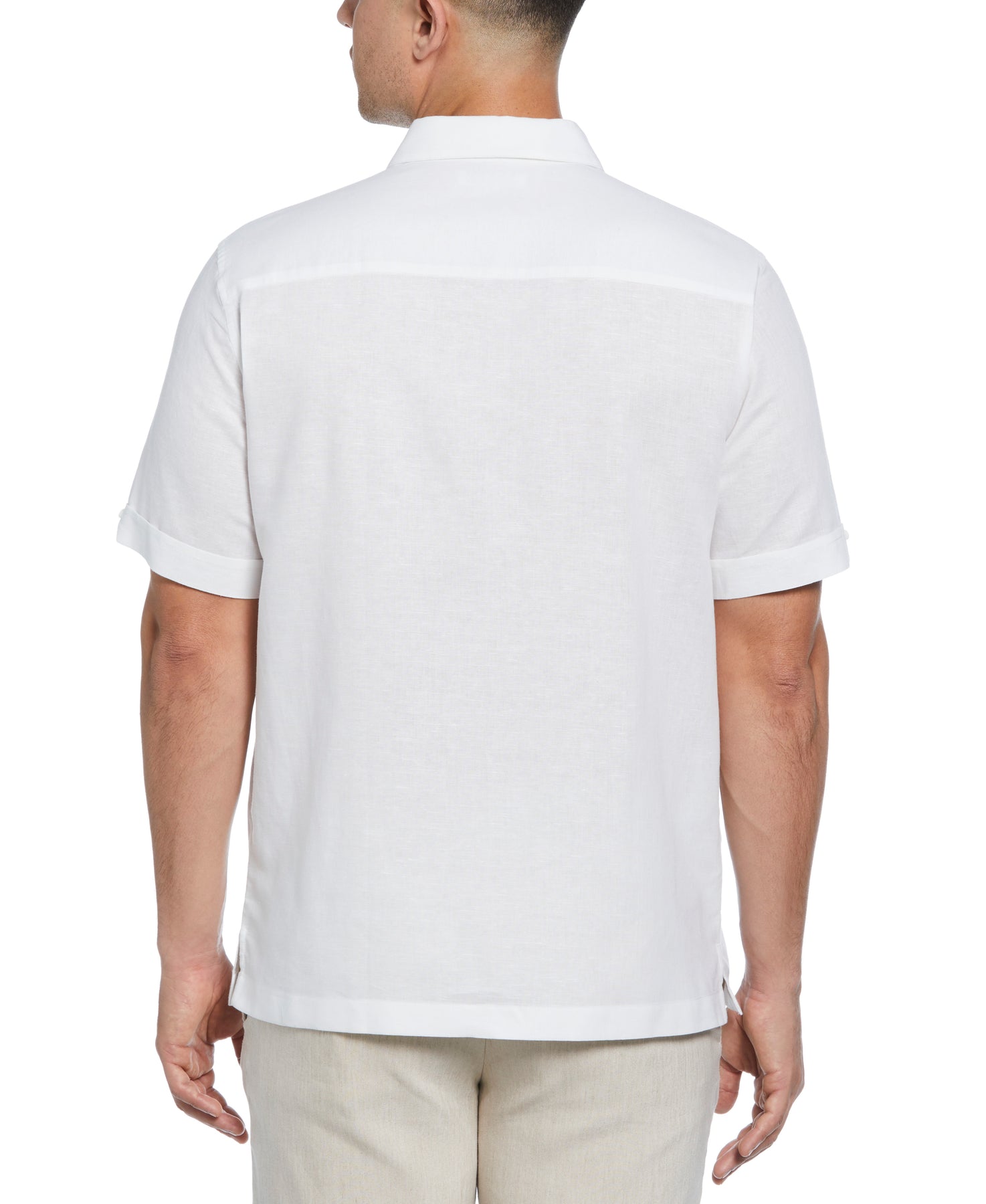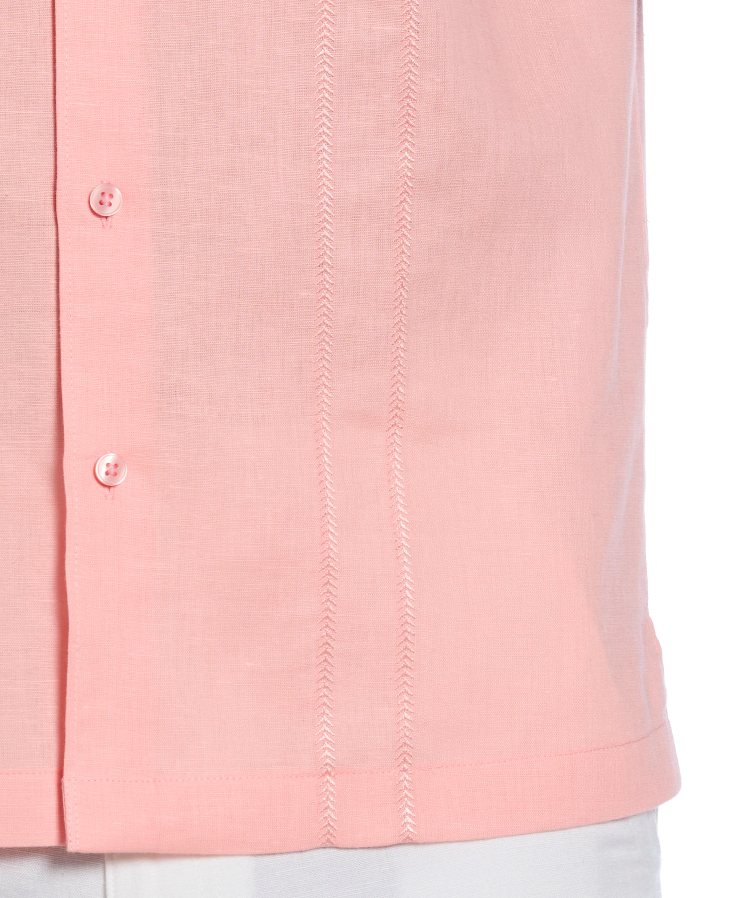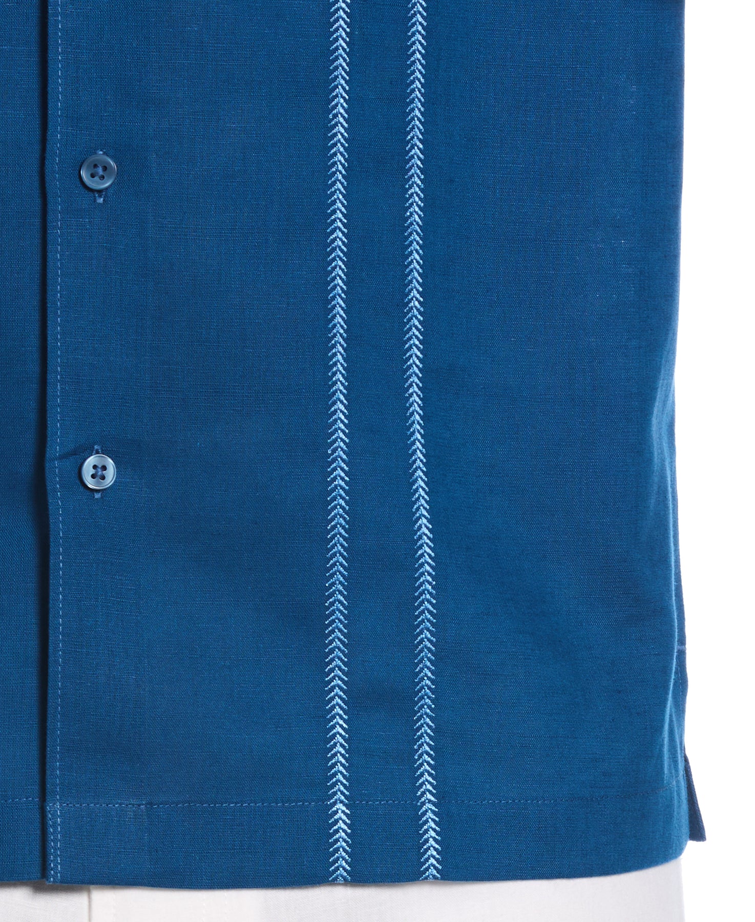 Style basics have never looked so good with this Cubavera men's short sleeve button up shirt. Breathable plain weave linen blend fabric delivers cool comfort without sacrificing durability. Embroidered vertical stripes elevate the look with a touch of lux, while a classic point collar adds instant polish. Pair this versatile short sleeve button up with shorts for elevated casual style or top off your favorite dress pants for a night out.
