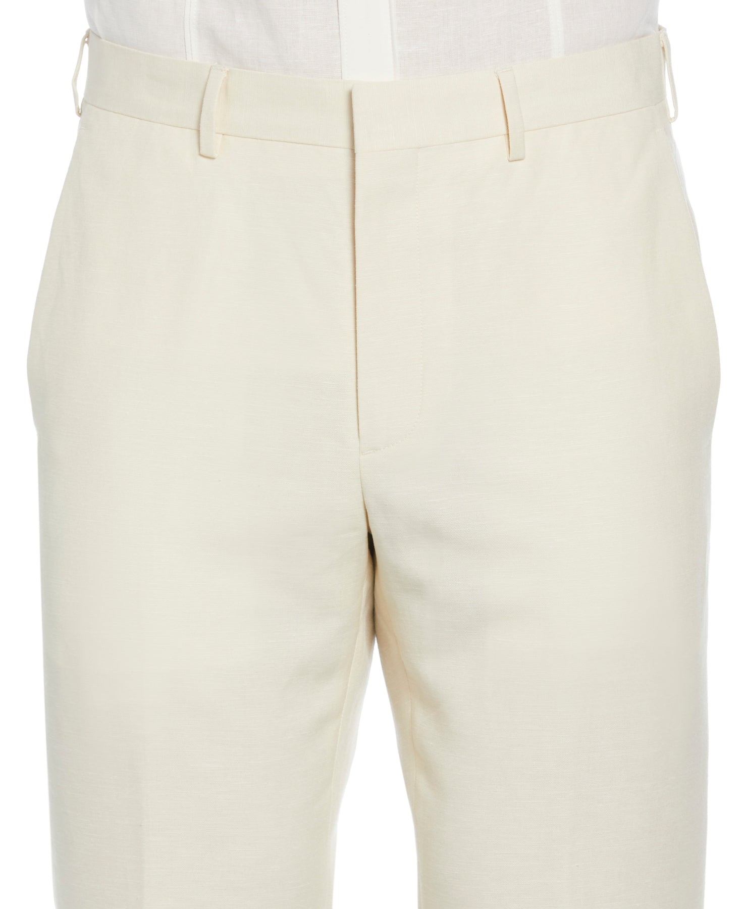 These Cubavera men’s cream pants are crafted from a lightweight linen blend material for comfort and breathability. Pair the clean lines of the flat front design with a tropical print button-down shirt.