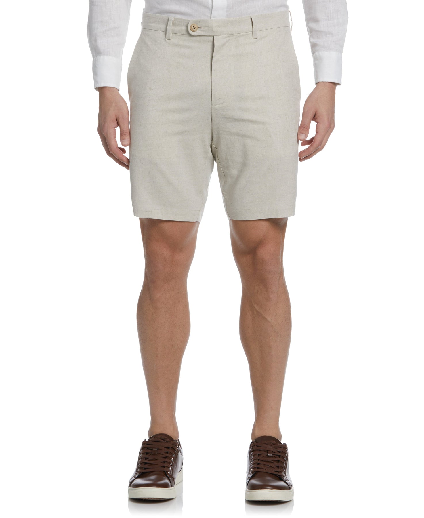 These shorts from Cubavera will keep you feeling and looking cool. Crafted from a breathable linen blend with durable plain weave fabrication, these men's shorts offer lightweight comfort and style. A flat front creates a smooth silhouette. Top them off with a colorful Cubavera button-down shirt for a striking look.