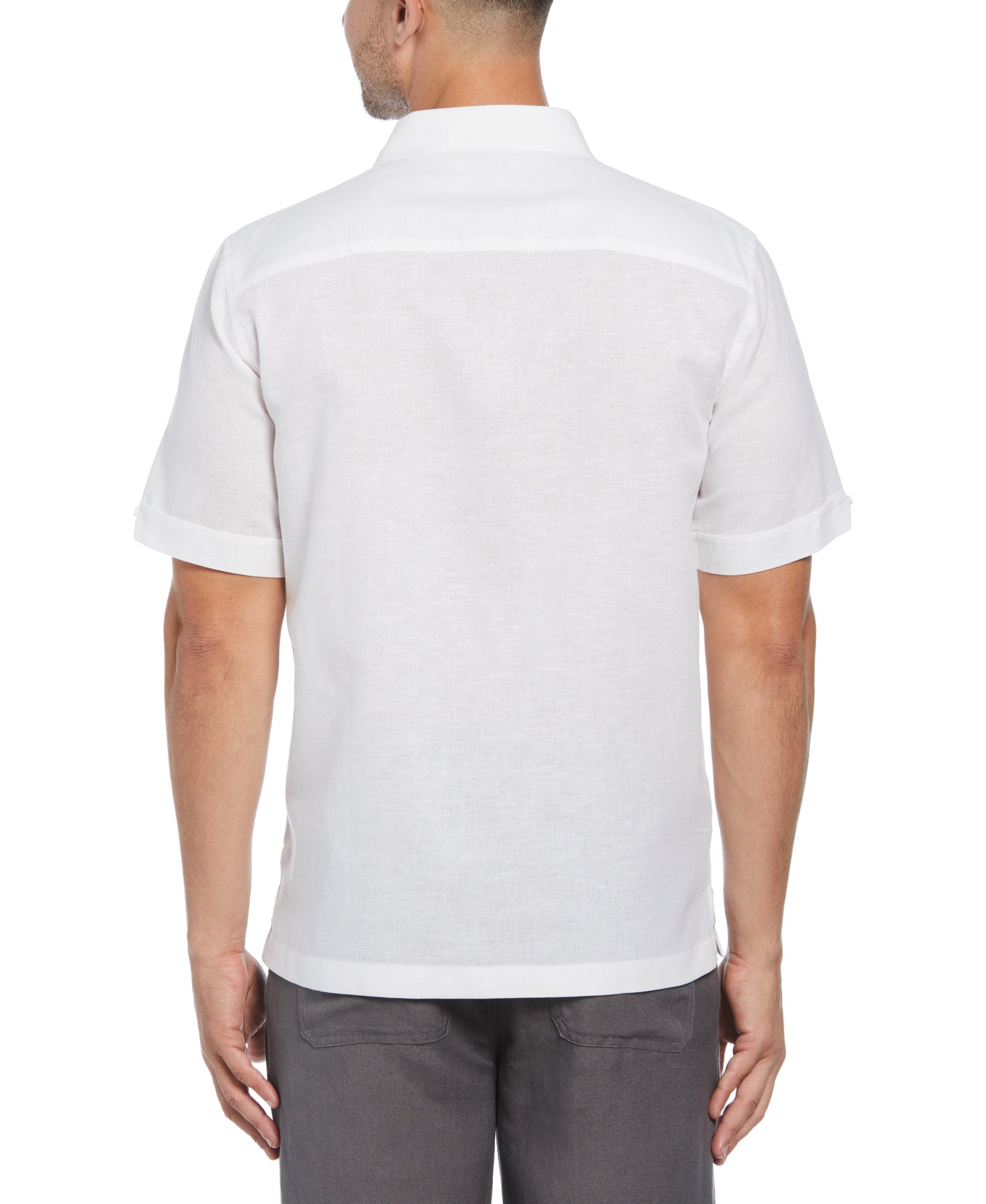 Experience an ideal blend of comfort and style with this men’s tropical shirt from Cubavera. Made with breathable linen blend fabric and featuring durable plain weave construction, this short sleeve button-up shirt is designed for long-lasting wear in warm climates. Geometric embroidery down the front panels adds a touch of sophistication, making it an ideal choice for both casual strolls around town and more formal family get-togethers. With its short sleeves and timeless button-down style, this shirt offers a relaxed yet refined look.