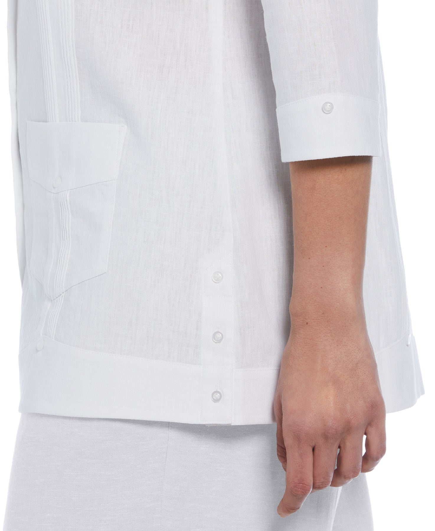 Embrace classic Cuban style in this cool and comfortable, white guayabera shirt from Cubavera. This women's long sleeve top features four pockets and distinctive guayabera styling for chic Latin-inspired style. The linen-viscose blend fabric drapes comfortably and the long sleeves provide comfortable coverage from the sun.