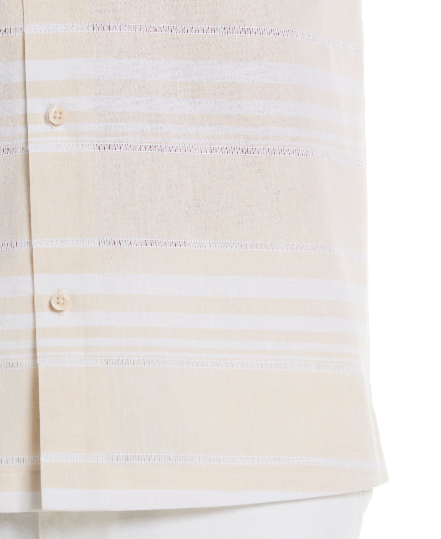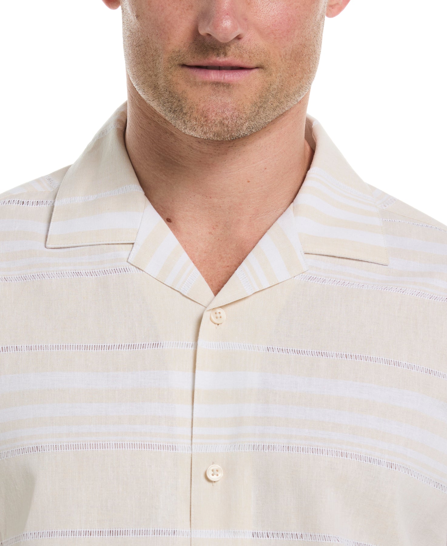 Feel as good as you look in this Cubavera men's short sleeve shirt. With a button front and retro Cuban collar, this short sleeve button up delivers a polished casual look you can wear almost anywhere. The striped design is easy to wear while the breathable, textured linen fabric offers all-day comfort.