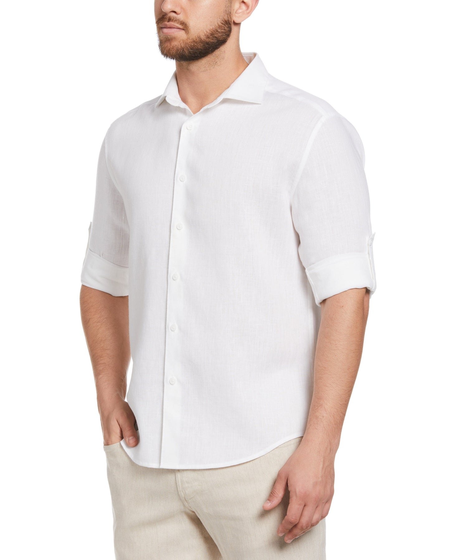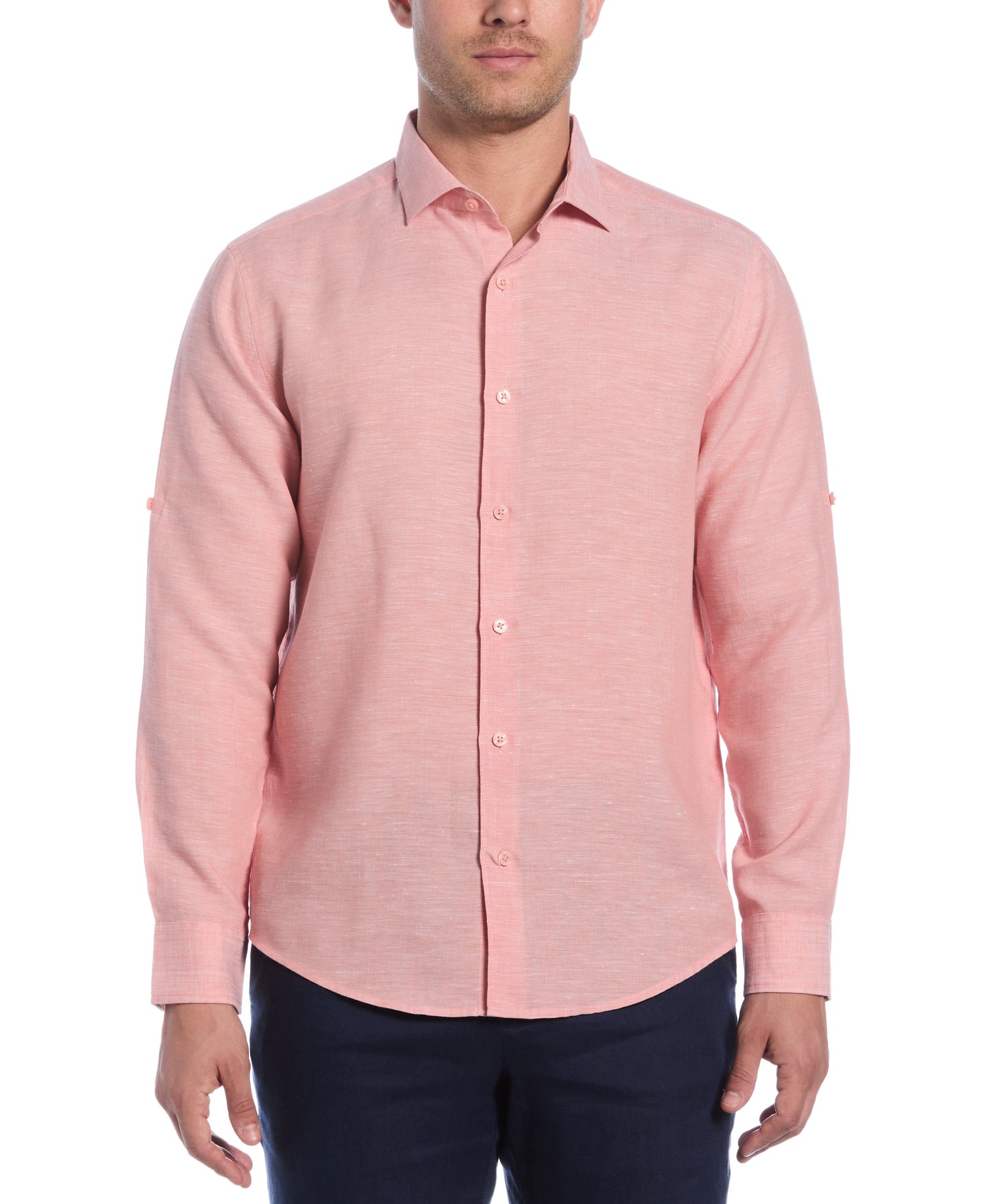 Look sharp wherever you go in this Cubavera men's long sleeve button up shirt crafted from a linen blend. The breathable fabric ensures cool comfort and the plain weave fabrication provides durability. The wrinkle-resistant fabric makes it a great pick for travel and business trips. A point collar adds classic style to this versatile linen shirt.