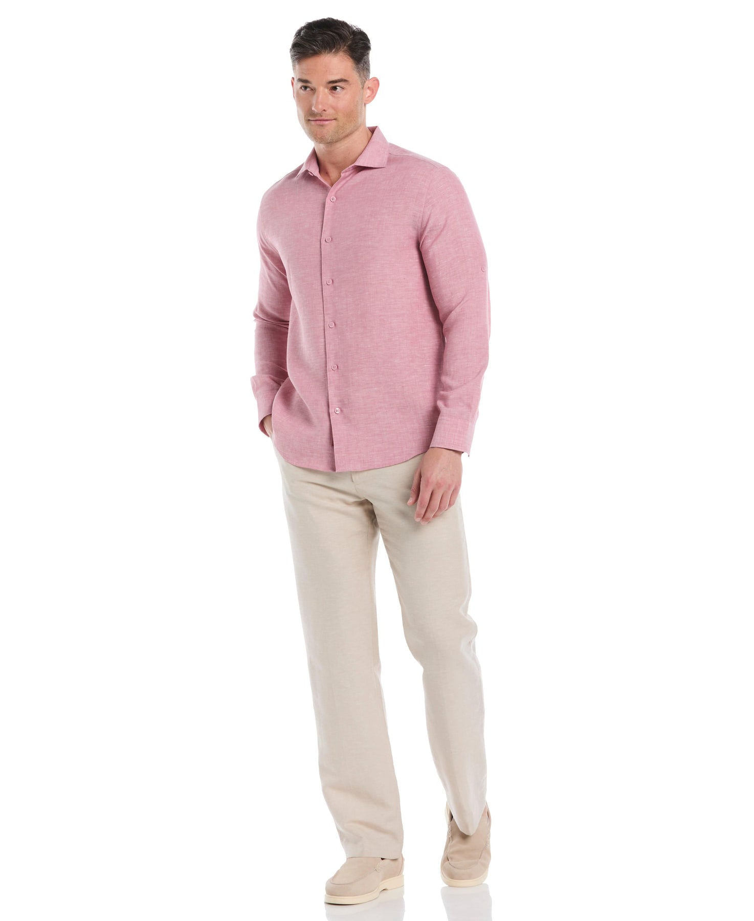 Look sharp wherever you go in this Cubavera men's long sleeve button up shirt crafted from a linen blend. The breathable fabric ensures cool comfort and the plain weave fabrication provides durability. The wrinkle-resistant fabric makes it a great pick for travel and business trips. A point collar adds classic style to this versatile linen shirt.