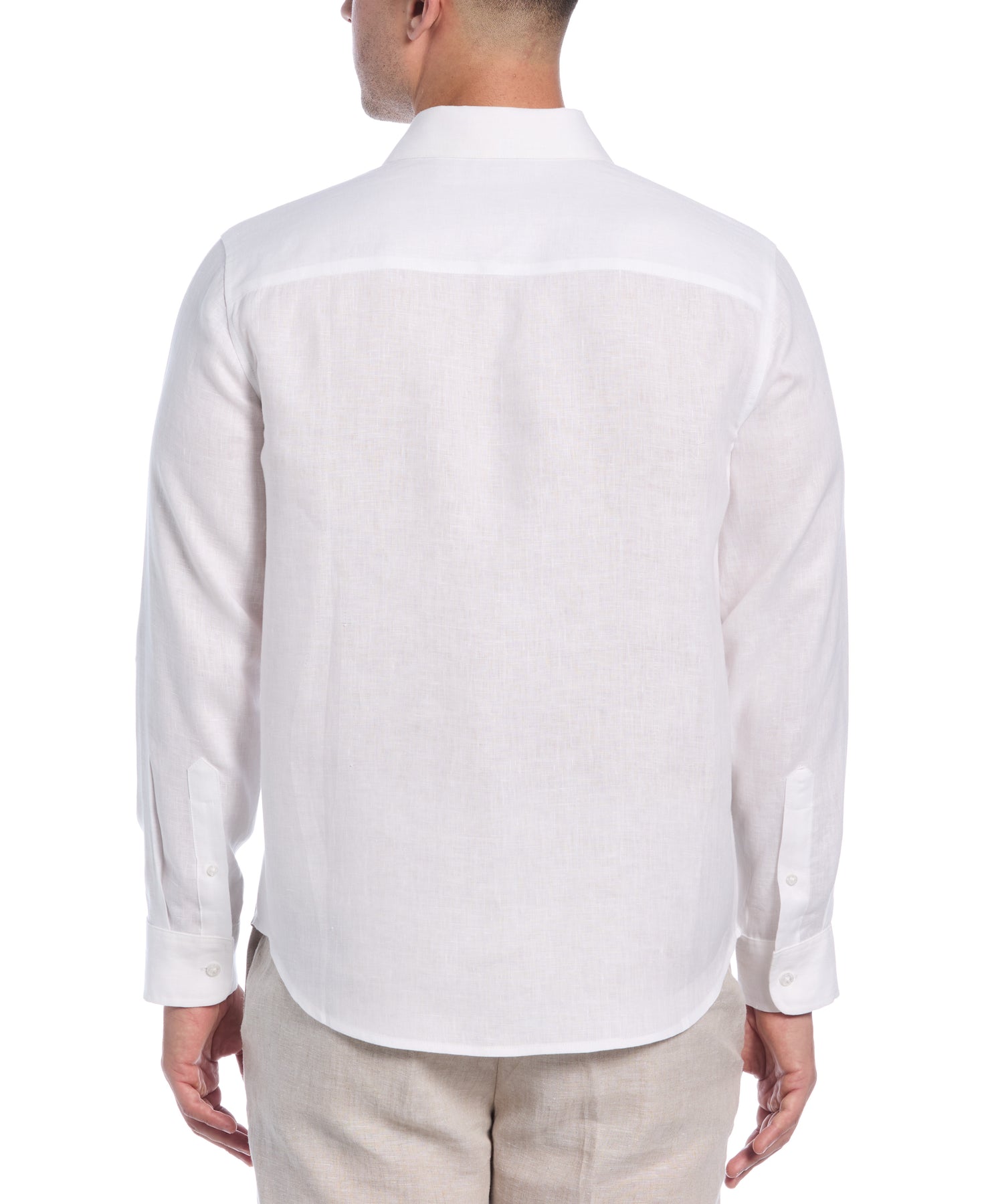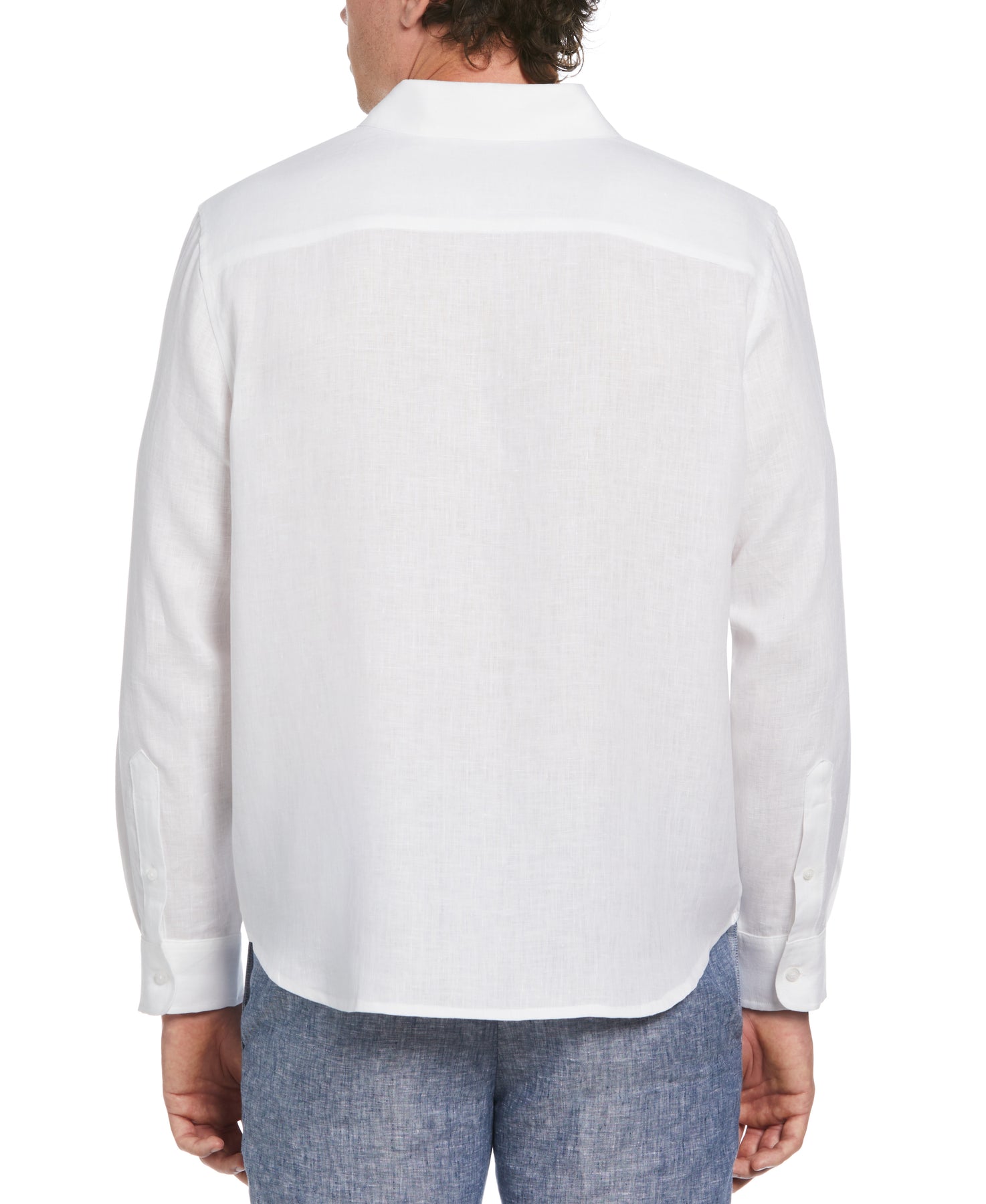 Embrace effortless elegance in this Cubavera men's long sleeve button-down shirt. Crafted from 100% plain weave linen, it offers lightweight, breathable comfort without sacrificing durability. The engineered tropical leaf print on this linen shirt creates a fashionable focal point without overwhelming your outfit. A simple point collar provides a polished finishing touch.