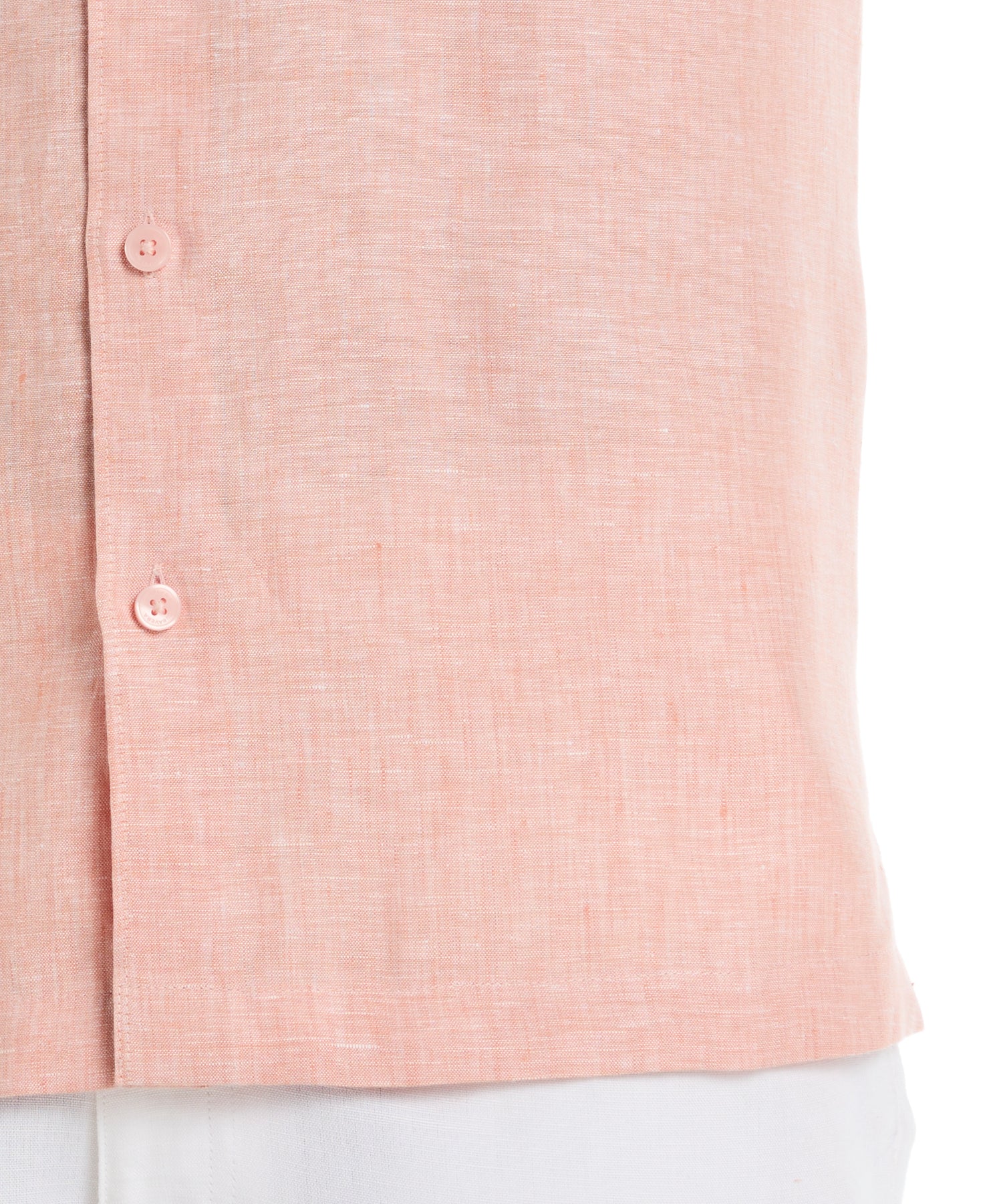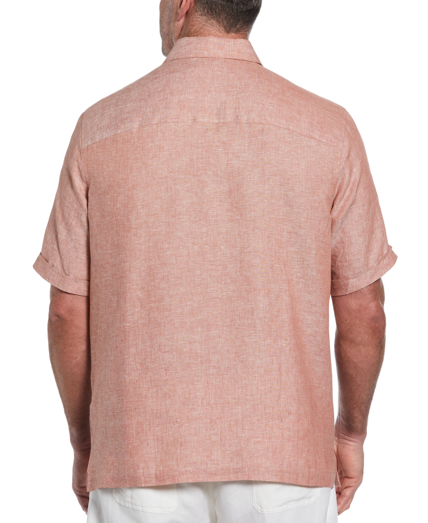 Elevate your style in this classic Cubavera men's short sleeve button up shirt, crafted from 100% linen, perfect for a breezy feel when warm temperatures hit. The plain weave fabrication ensures long-lasting quality and lightweight breathability for all-day comfort. With its traditional design and impeccable craftsmanship, this versatile men's linen shirt is an essential piece for both relaxed and more refined occasions.