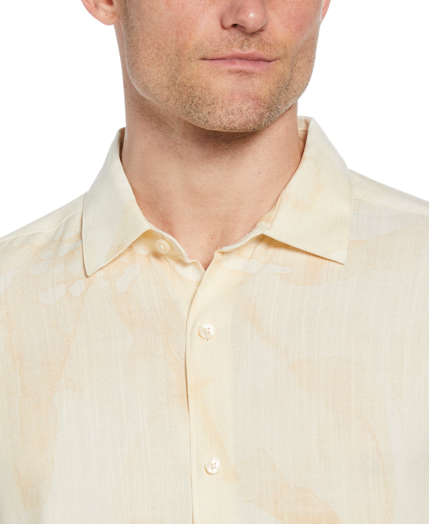 An oversized floral print brings a sophisticated tropical vibe to this men's short sleeve button-down shirt from Cubavera. The plain weave viscose fabric drapes smoothly against the body for lightweight comfort on the beach or on the dancefloor.