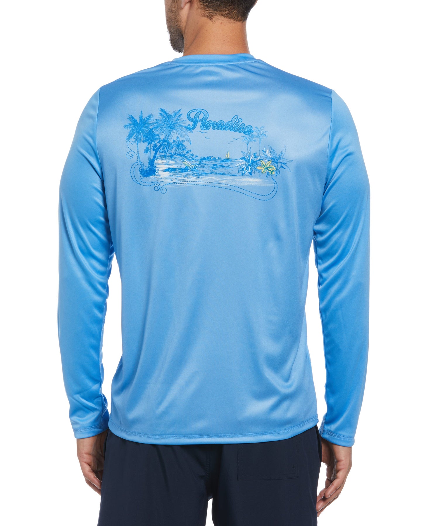 The back of this Cubavera men’s long sleeve shirt pops with a fun and fashionable paradise print. Double-knit fabric with added stretch provides a fit that moves with you and moisture-wicking properties keep you feeling cool and comfortable. This crew neck shirt offers innovative sun protection from damaging UV rays so you can soak up the sun safely. Pair it with your favorite Cubavera pants or shorts for a cool, casual look that has you covered.