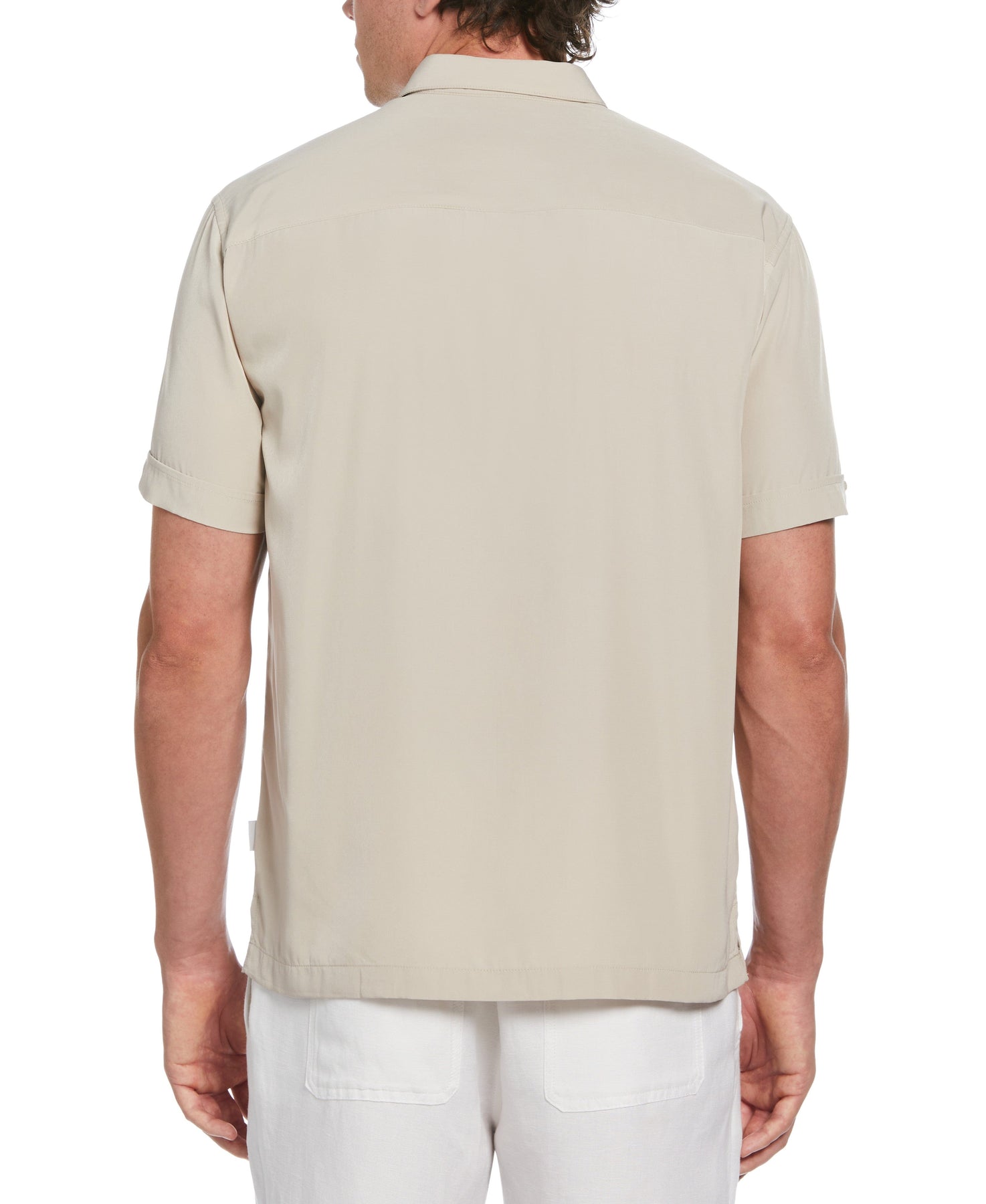 Treat yourself to a Cubavera short sleeve button-down shirt and raise your comfort level. Designed for all-day comfort, the men's short sleeve shirt is made from a smooth, soft touch fabric and it has eye-catching pick stitch detailing at the front. This one features an eye-catching pick stitch panel design on smooth soft touch fabric. The material is crafted with a tight plain weave pattern for impressive durability, and it's machine washable for easy care. Add Cubavera linen pants, a Panama hat and mesh slip-ons and it's a whole new you.