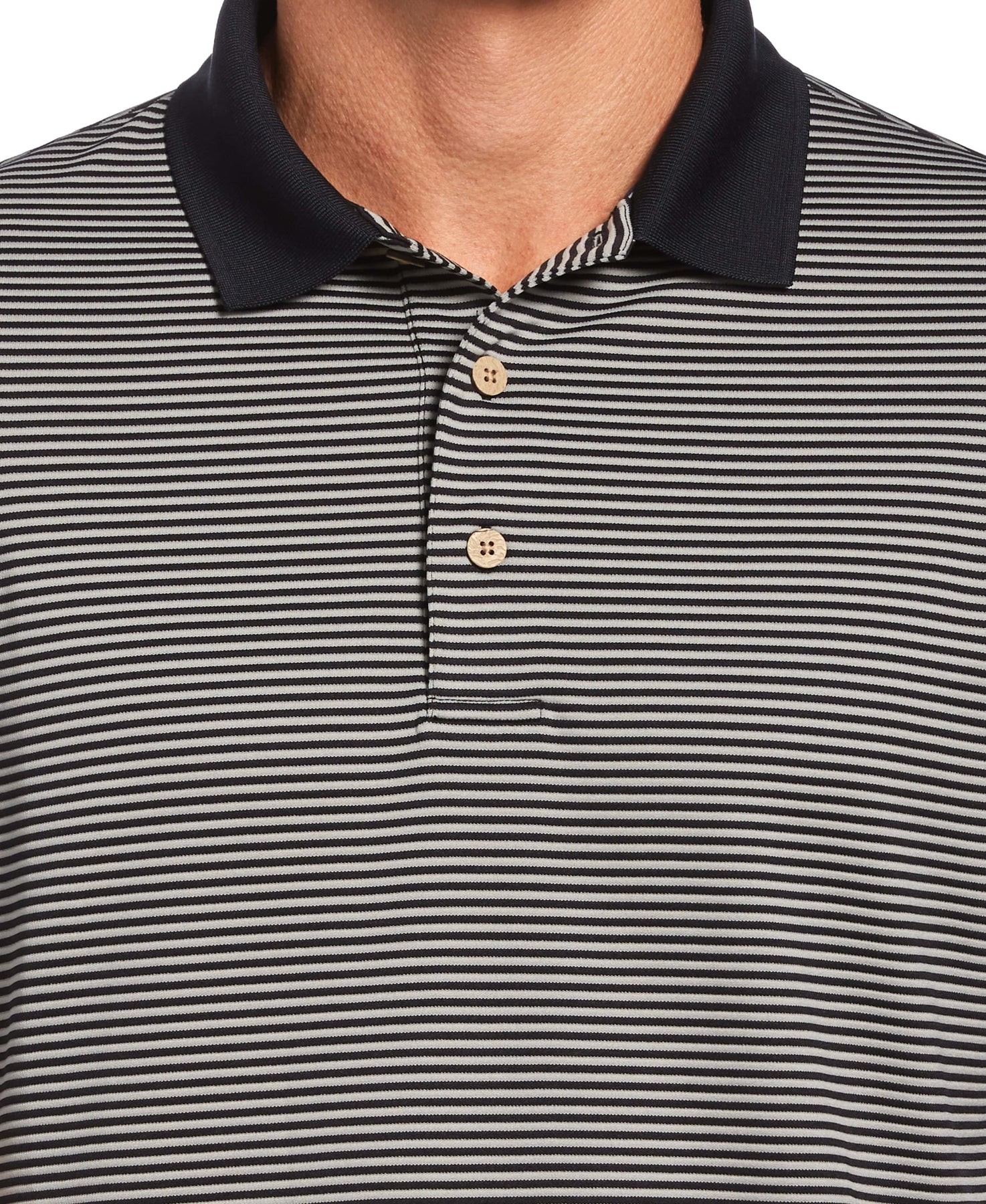 Upgrade your casual look with this men's polo by Cubavera. This comfortable short sleeve style features small stripes and a contrast collar that brings dimension to any casual style. Moisture-wicking fabric ensures you stay dry and feel fresh no matter where your day takes you.