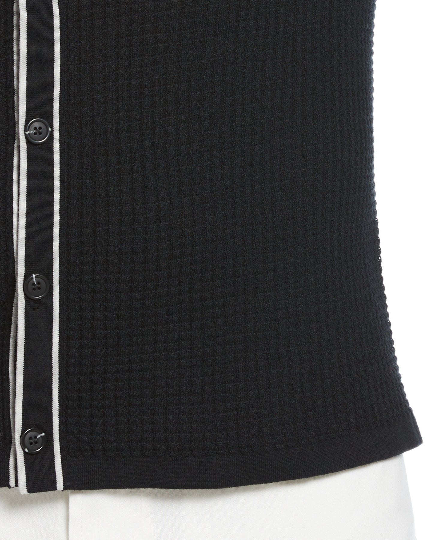 This Cubavera men's short sleeve sweater is an instant classic. It's made with a soft cotton-modal textured fabric that feels as good as it looks. Tipping along the placket adds eye-catching detail that pops against the versatile solid background of this button-down sweater.