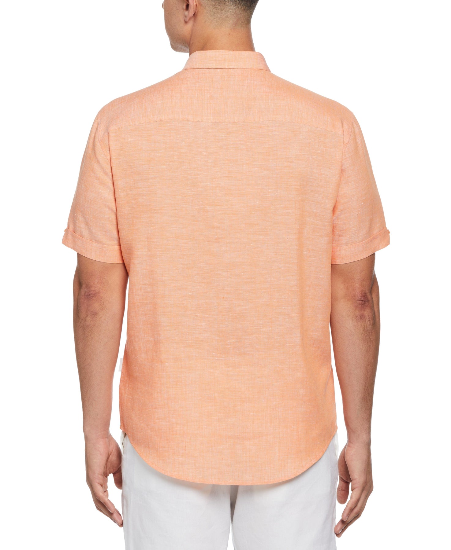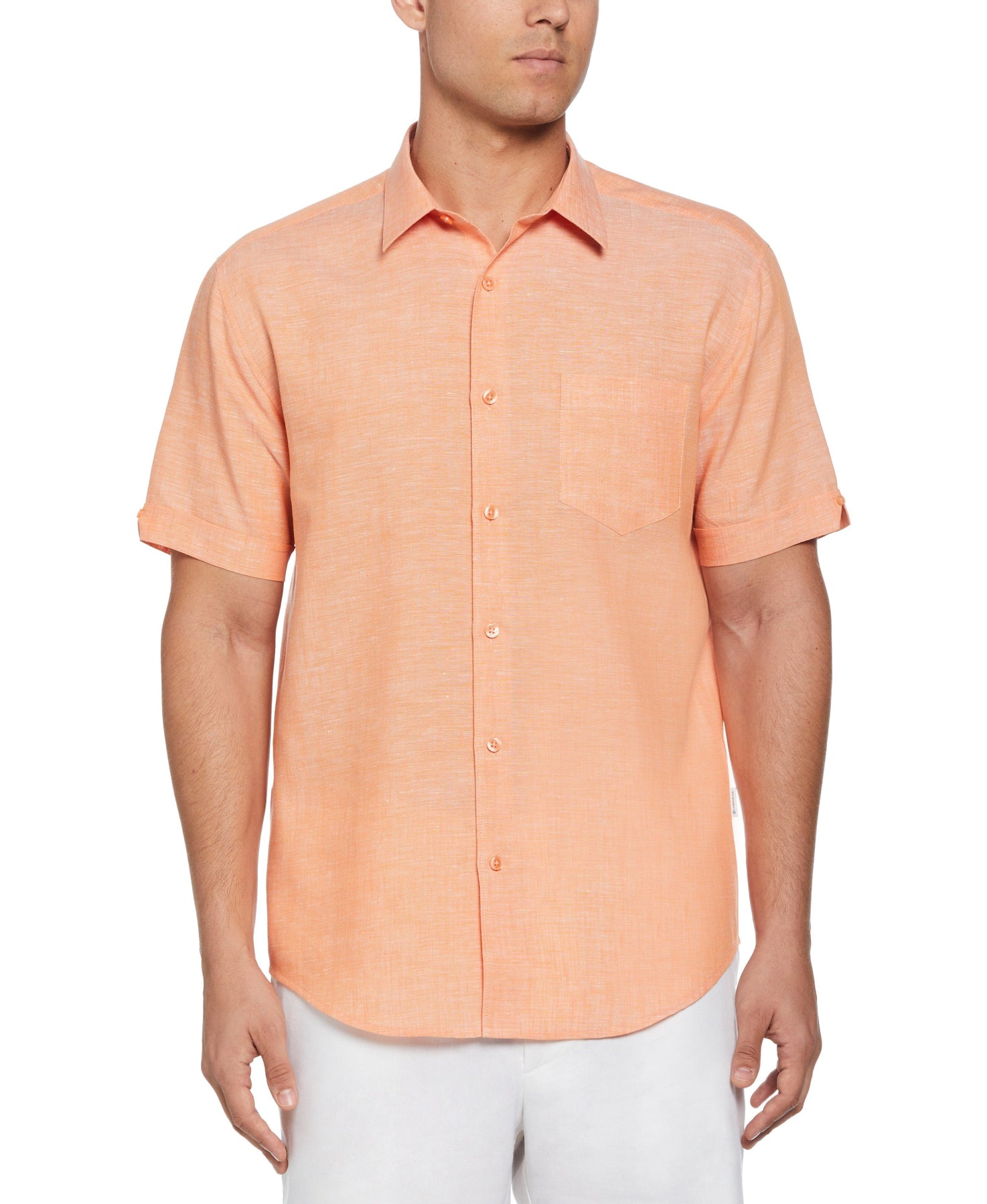 A versatile shirt you can take along on both work trips and family vacations, this Cubavera men’s short sleeve button-up pairs effortlessly with almost any casual bottom. The men’s short sleeve shirt is made from a breathable linen blend fabric, in a plain weave that stands up well to everyday wear and tear. It has a single chest pocket and cuffed sleeves, and it’s topped off with a crisp point collar for a polished finishing touch.