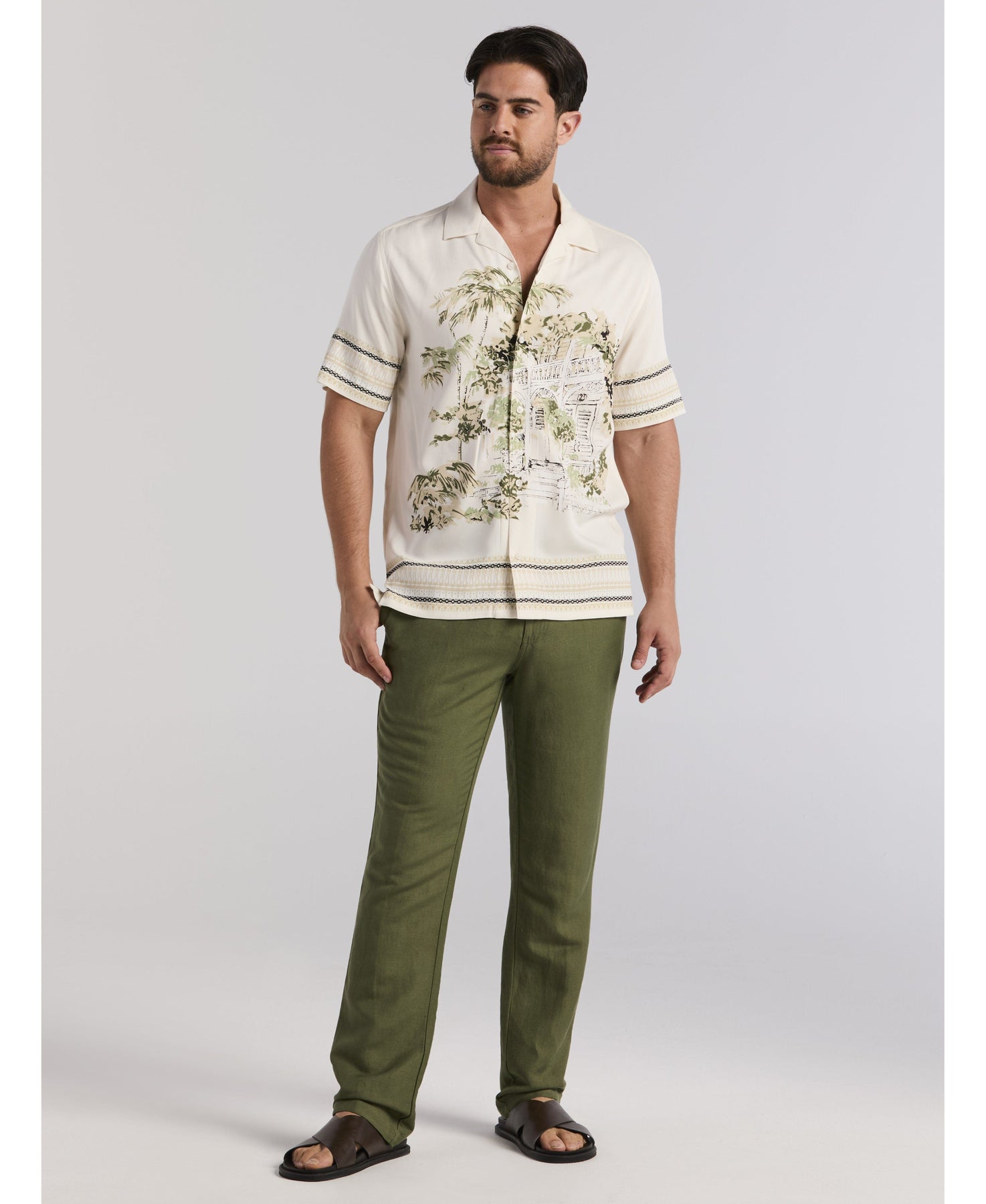 Make a vibrant statement with this Cubavera men's short sleeve button up shirt. Crafted from soft, flowing viscose fabric with a durable 2/1 twill fabrication, it delivers exceptional comfort and lasting wear. The striking scenic print creates an eye-catching visual that is perfect for any stylish occasion. A retro-inspired Cuban collar adds a relaxed touch, making this versatile button-down shirt ideal for your next getaway or a night out.