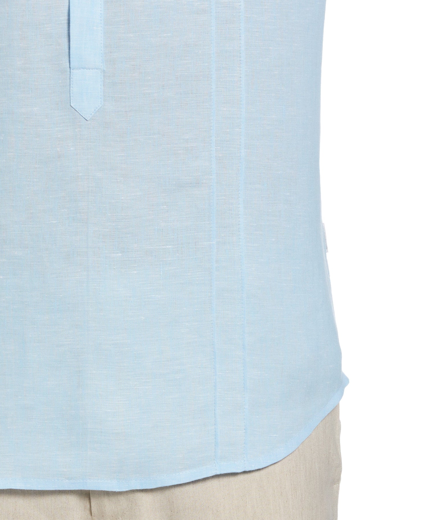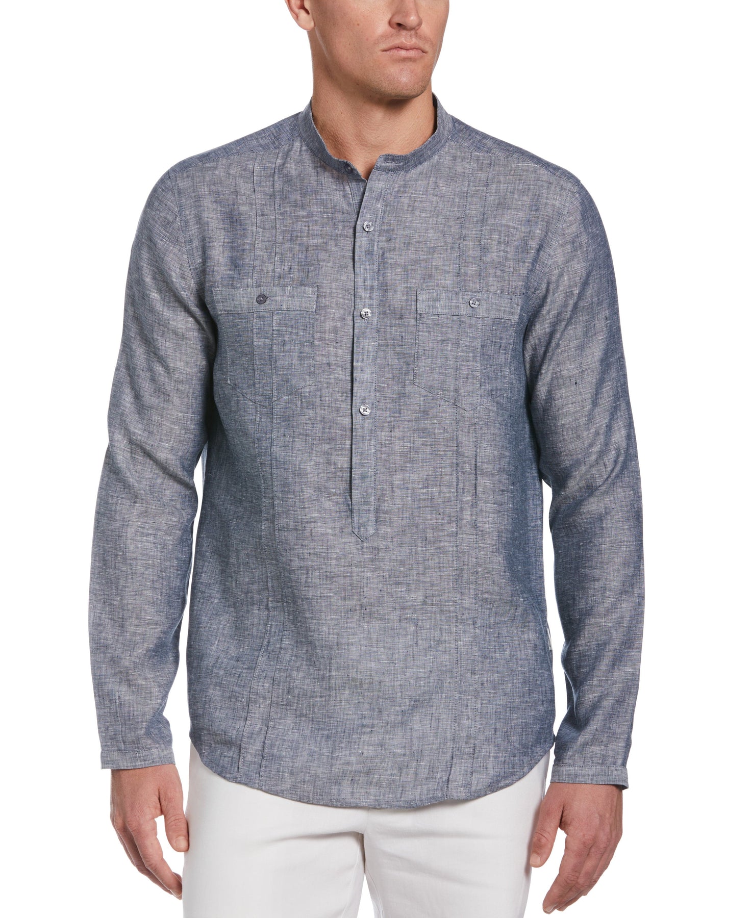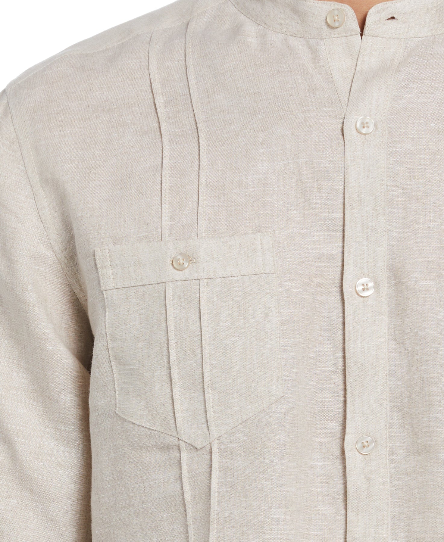 Go from the beach to the nightclub without missing a beat. The breathable linen fabric, banded collar and popover design add a laidback vibe to your wardrobe. Pintuck detailing and two buttoned chest pockets help you stand out with style. Complete your look with a pair of Cubavera linen pants and sandals.