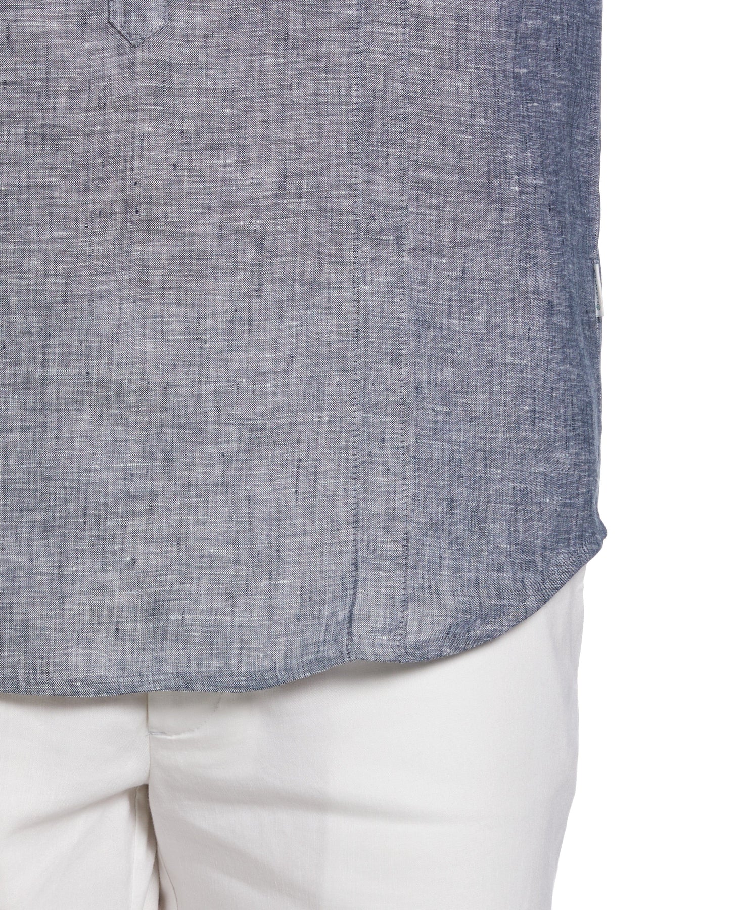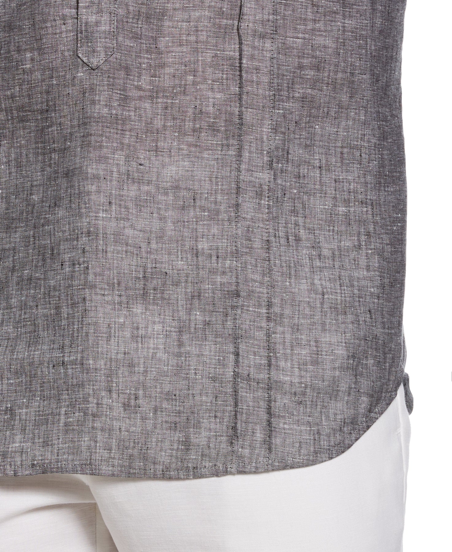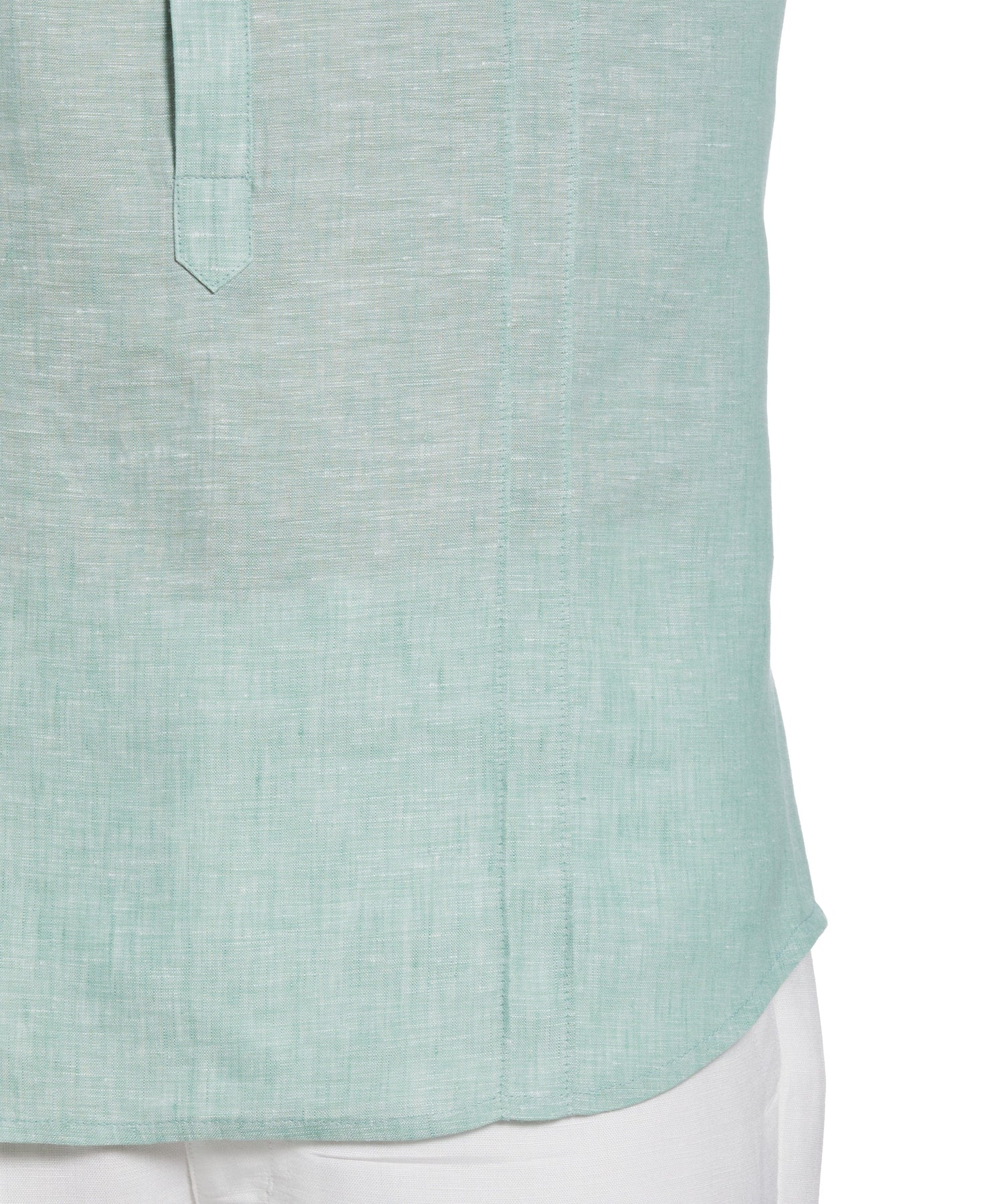 Go from the beach to the nightclub without missing a beat. The breathable linen fabric, banded collar and popover design add a laidback vibe to your wardrobe. Pintuck detailing and two buttoned chest pockets help you stand out with style. Complete your look with a pair of Cubavera linen pants and sandals.