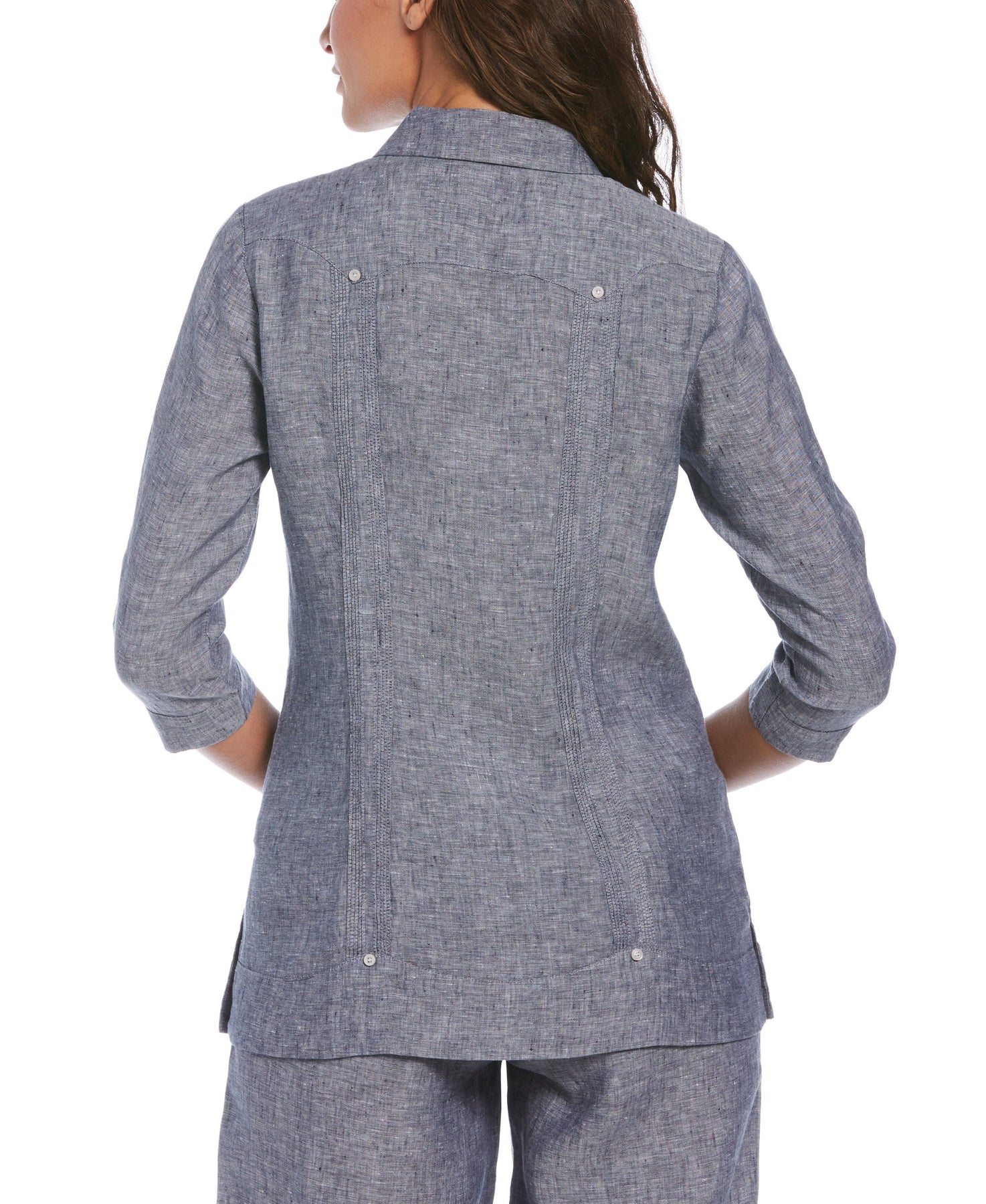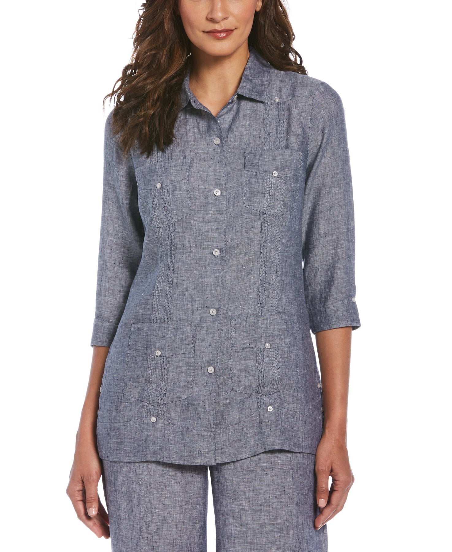 Rock a timeless casual look with this women’s Guayabera shirt from Cubavera. Crafted from 100% linen, this lightweight and breathable shirt for women provides comfortable coverage in the warm weather. The fashionable two-tone finish and distinctive Guayabera pintucking and pockets are sure to make this 3/4-sleeve linen shirt a favorite.